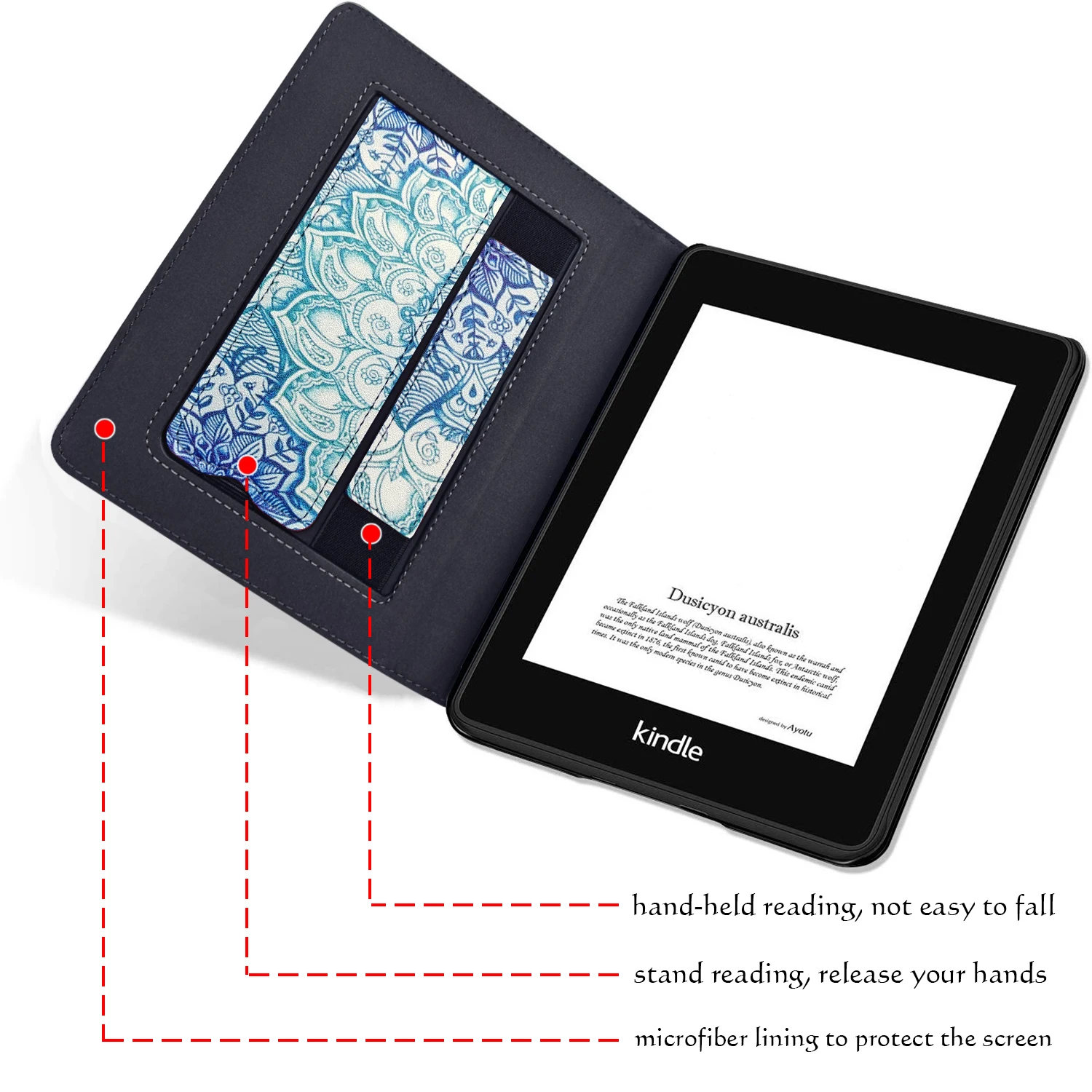 Магнитный чехол kindle paperwhite автоматически будит ваше устройство при открытии и позволяет ему спать при закрытии. И магнитная застежка надежно закрывает крышку, защищая ваше устройство от выпадения.