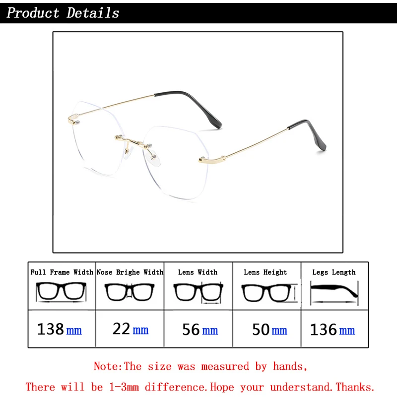 Женские очки для близорукости без оправы, металлические многоугольн...