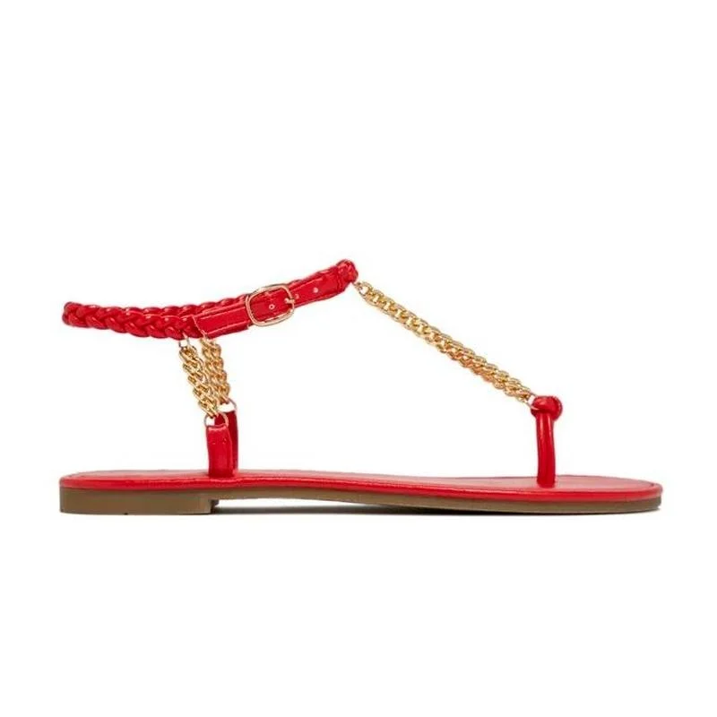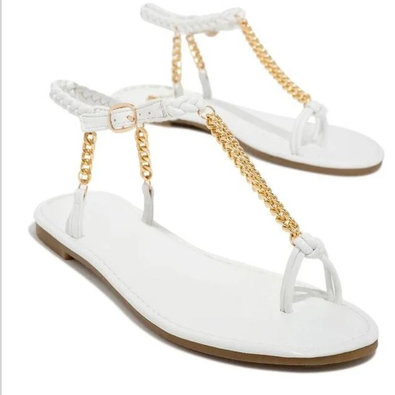Сандалии женские пляжные, плетеные дышащие Туфли с круглым носком, плоская металлическая цепочка, большие размеры