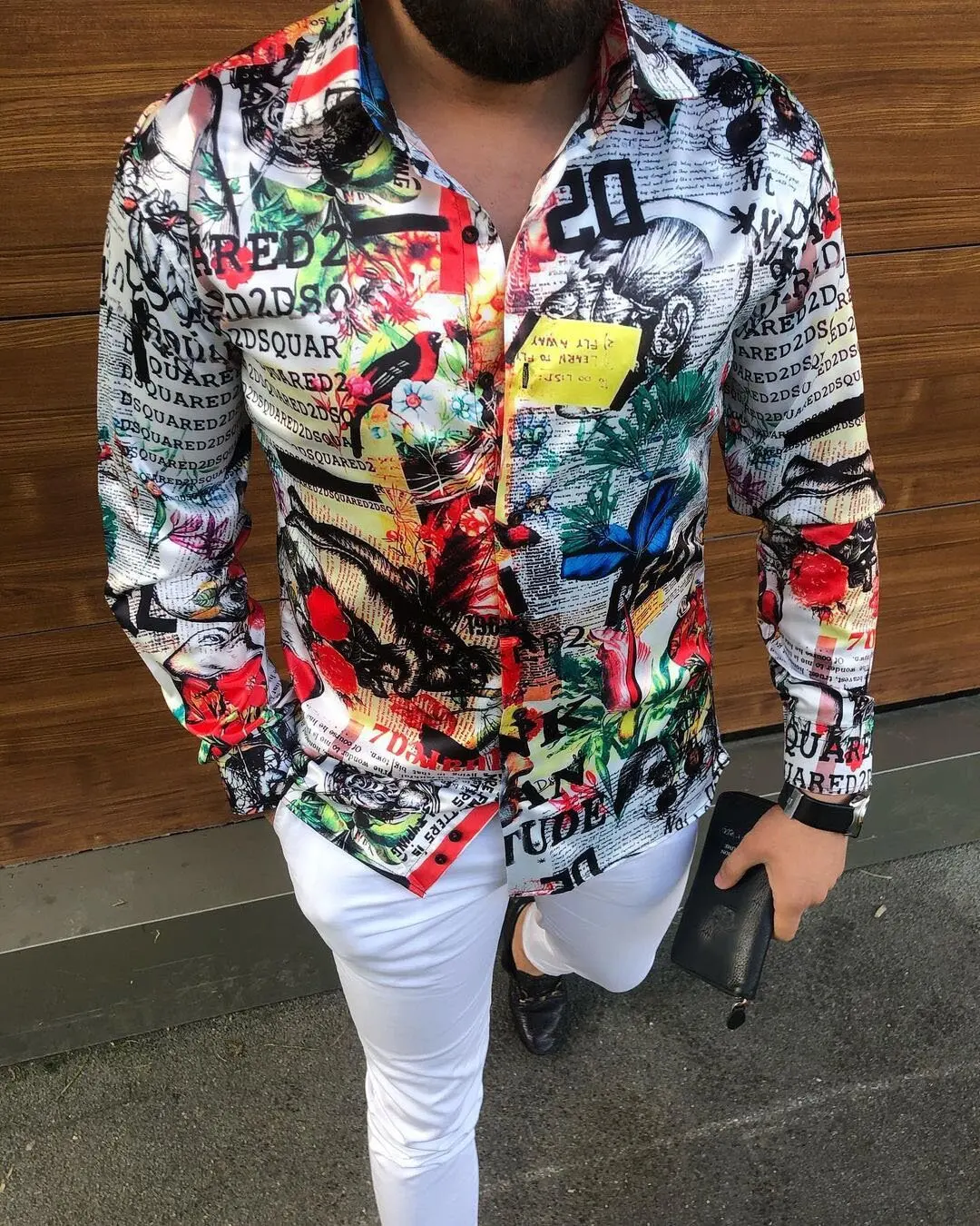 Мужская Повседневная рубашка с длинным рукавом, отложным воротником и принтом