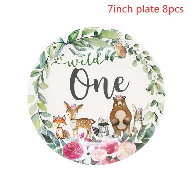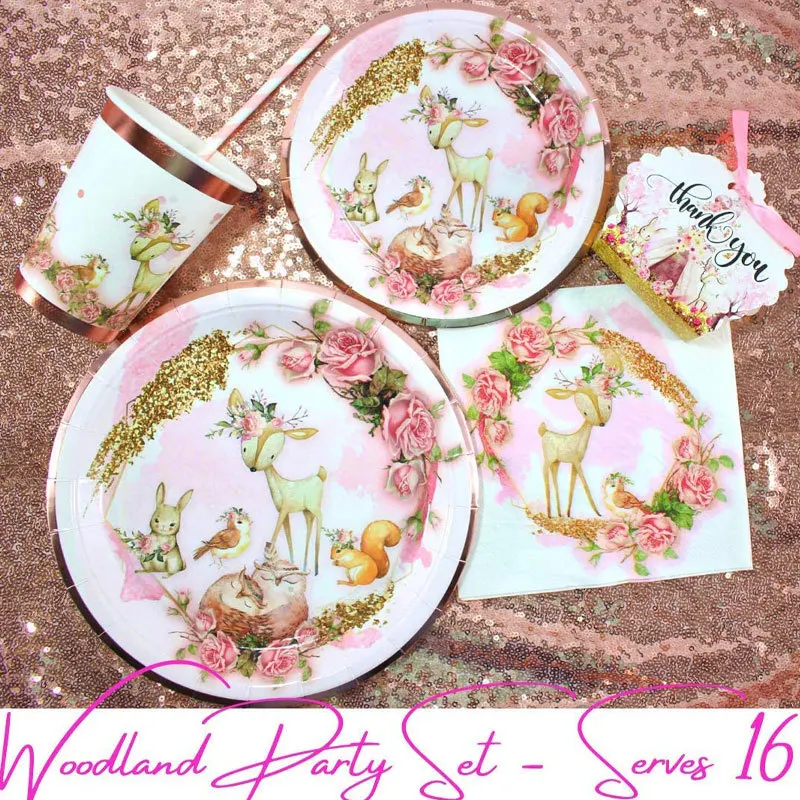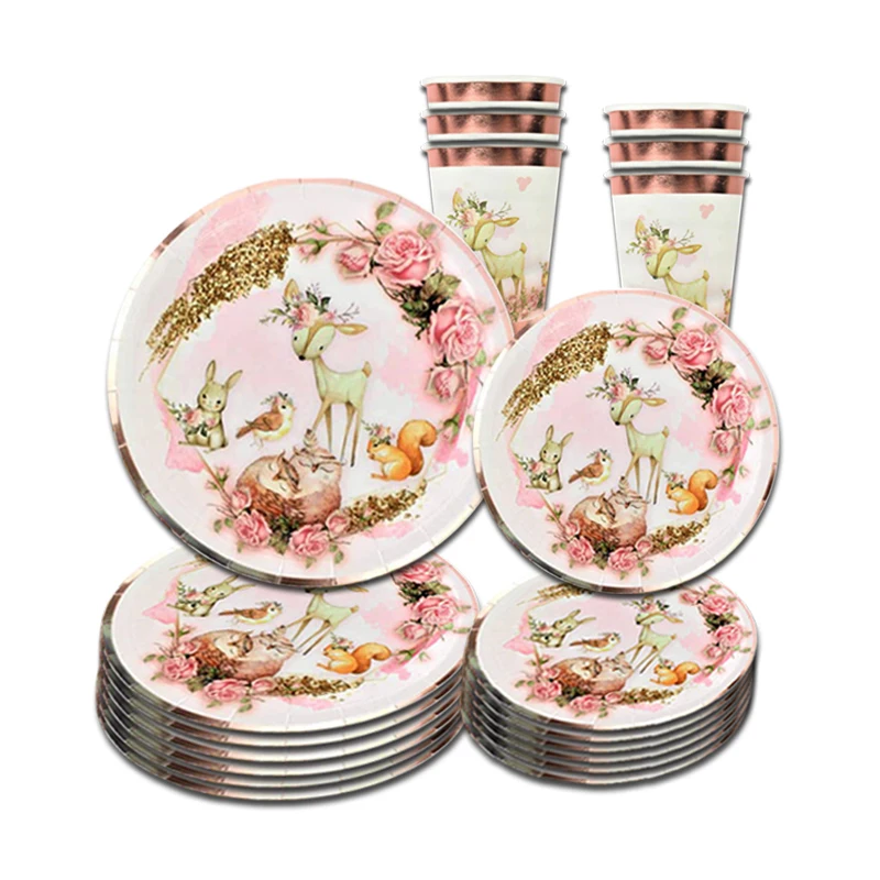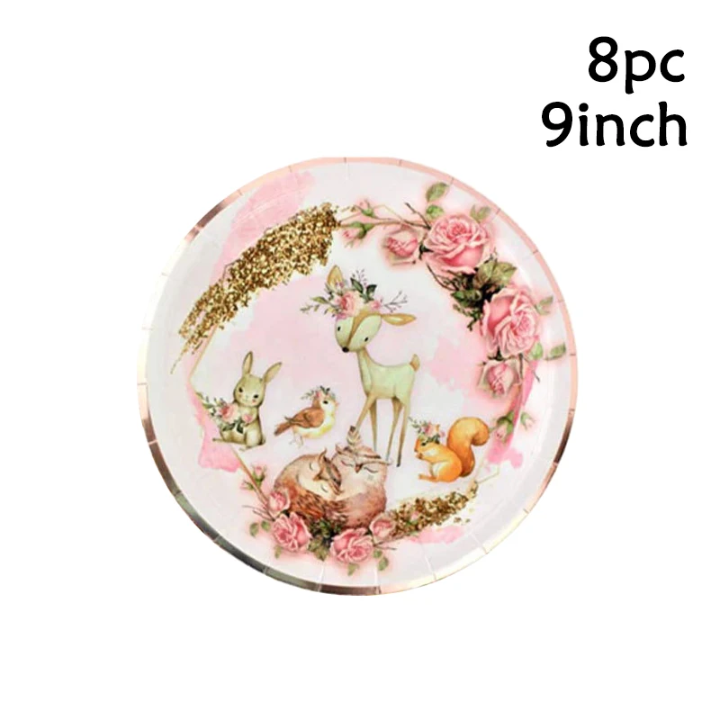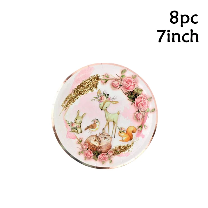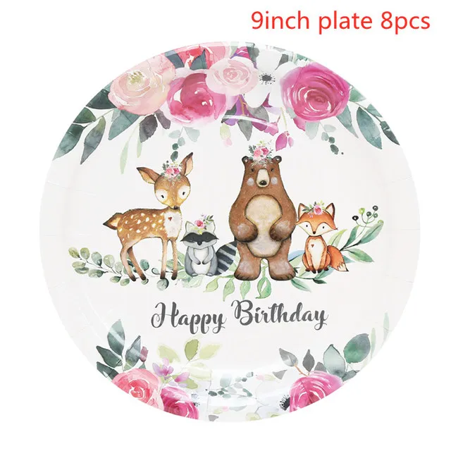 Столовая посуда с изображением лесных животных для вечевечерние, тарелка с изображением оленя, украшение для вечеринки в честь Дня Рождения, товары для детского сафари и леса