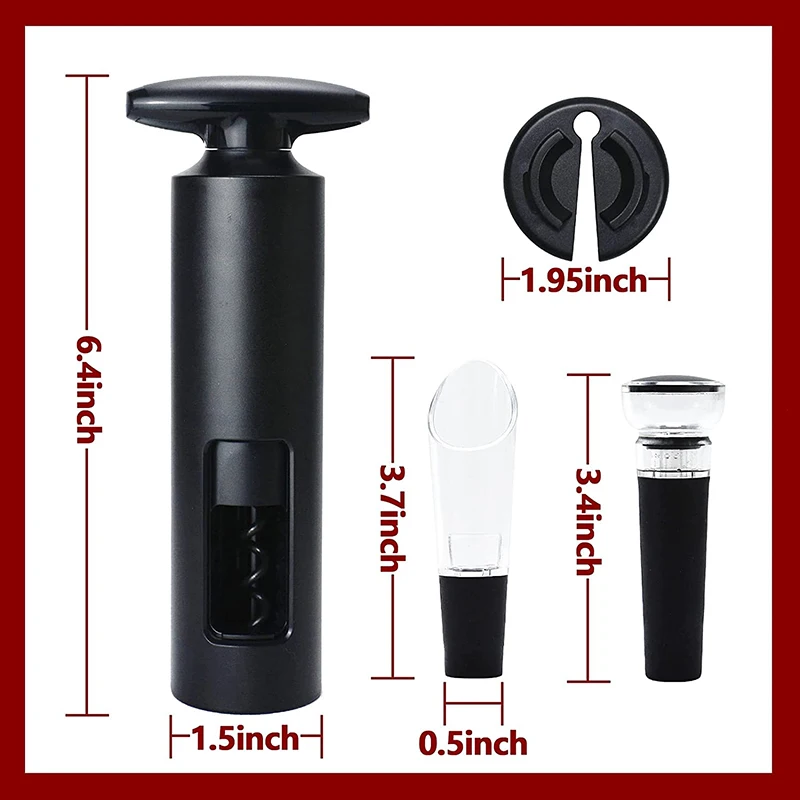 Набор из 4 пакетов удовлетворяет потребность в одновременном питье, наливании и хранении вина.Применимо к большинству горлышек бутылок на рынке, без усилий шлак не будет выпадать. Благодаря модернизации и улучшению формы она имеет горлышко бутылки с очень большим внешним диаметром 35 мм, что позволяет легко открывать разные винные бутылки.Оснащенный разливатель для вина может мгновенно протрезветь вино. Используя Быстрый Графин, в тот момент, когда вино выливается, оно проходит через поры внутреннего канала, быстро окисляется воздухом и производит большое количество видимых мелких пузырьков. В момент розлива вино немедленно обветшится. Отрезвляет невероятно быстро.Пробка для вина используется для хранения красного вина, вакуум всегда остается постоянным, а свежесть сохраняется длительное время. Через 7 дней красное вино открывается, а аромат остается свежим.
