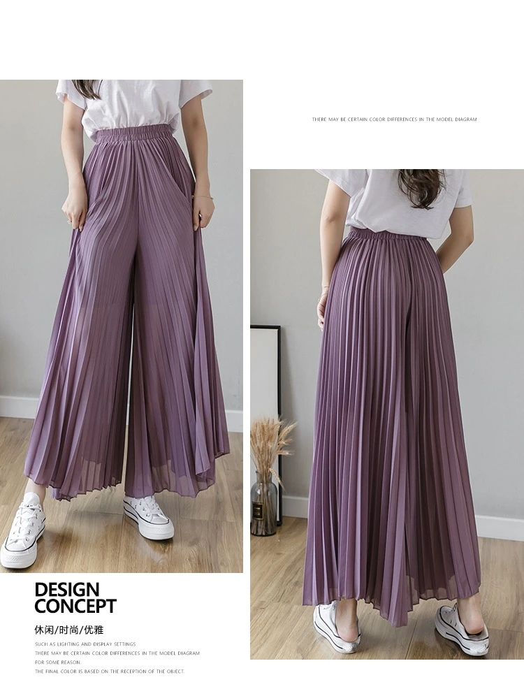 2021 стильные плиссированные юбки Брюки для женщин свободные шифоно...