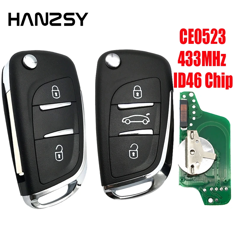 Модифицированные кнопки 23 для дистанционного ключа PEUGEOT 407, 307, 308, 807, 207, Partner, с чипом ID46 ASK CE0523, 433 МГц, лезвие HU83VA2