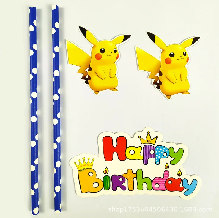 Реквизит для вечеринки в честь Дня Рождения с покемоном, соломенный баннер, товары для вечеринки в честь будущей матери, Топпер Пикачу, сюрприз для мальчика