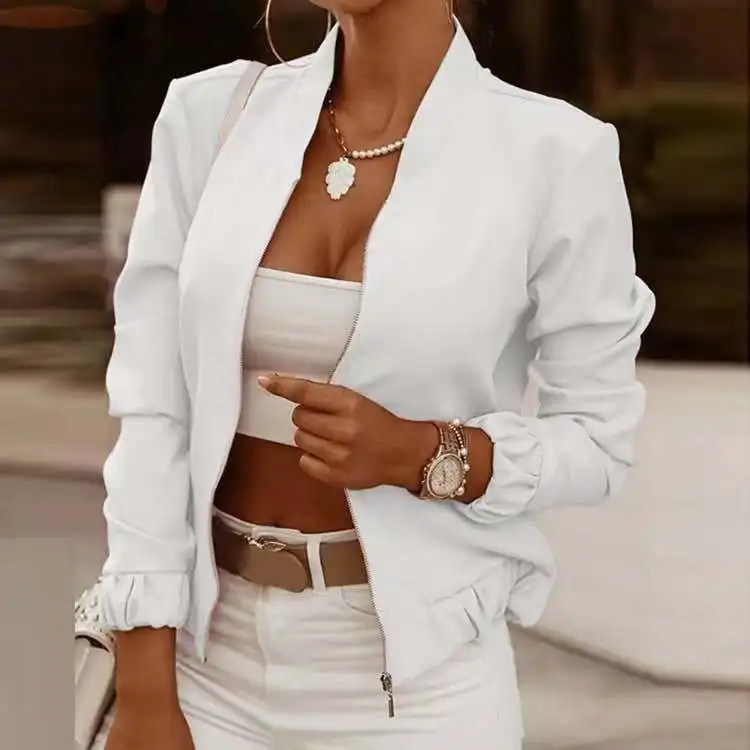Осенняя модная женская куртка-бомбер 2021 Толстовка для отдыха с круглым вырезом и молнией ветровка женские короткие пальто зимние куртки