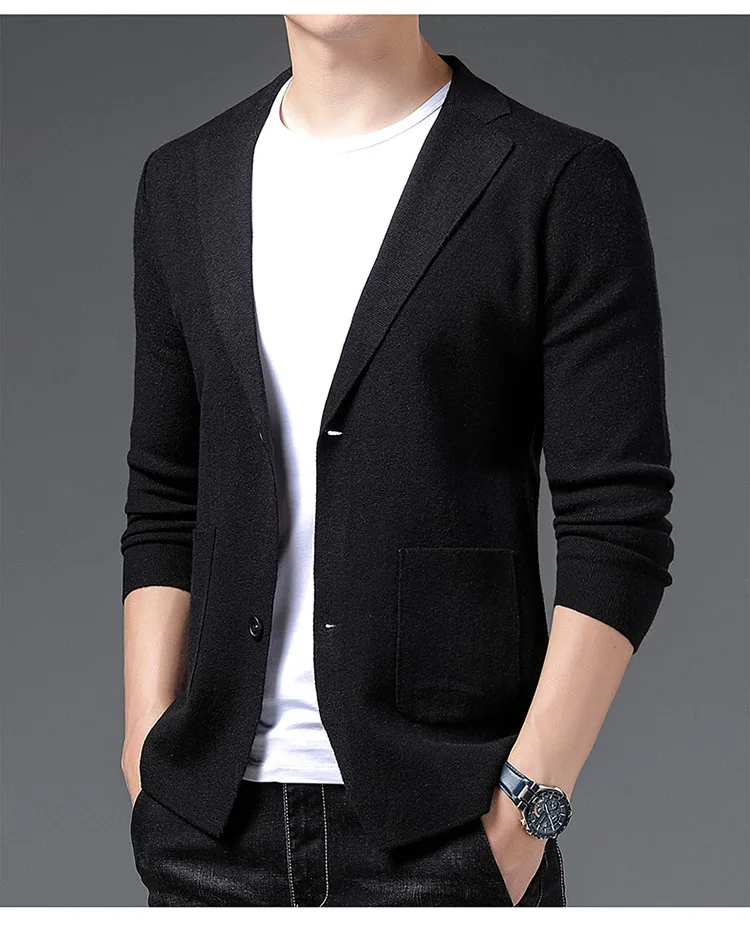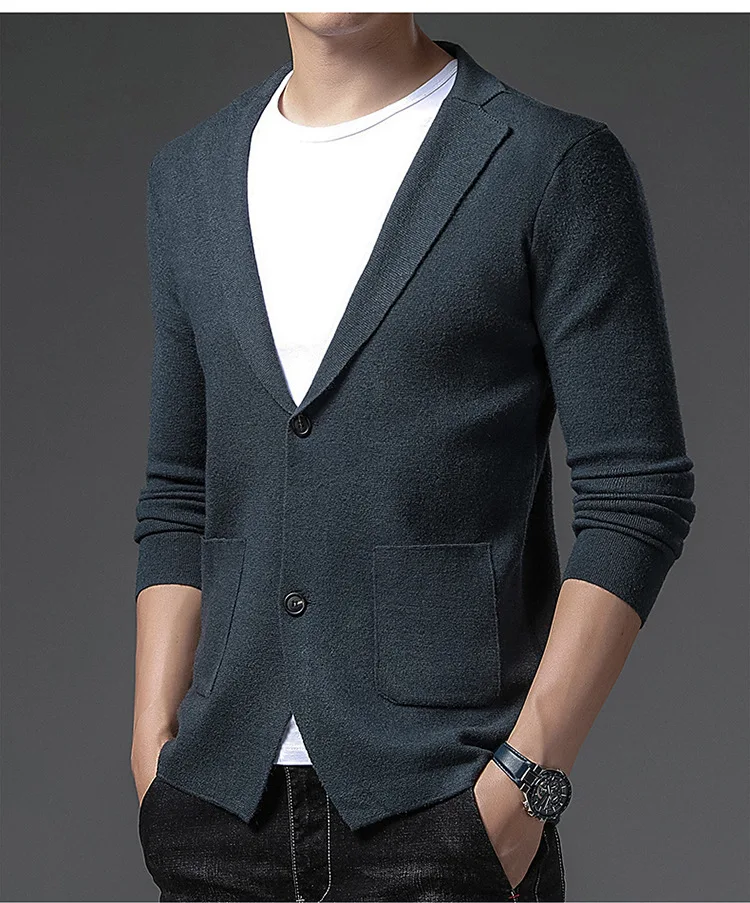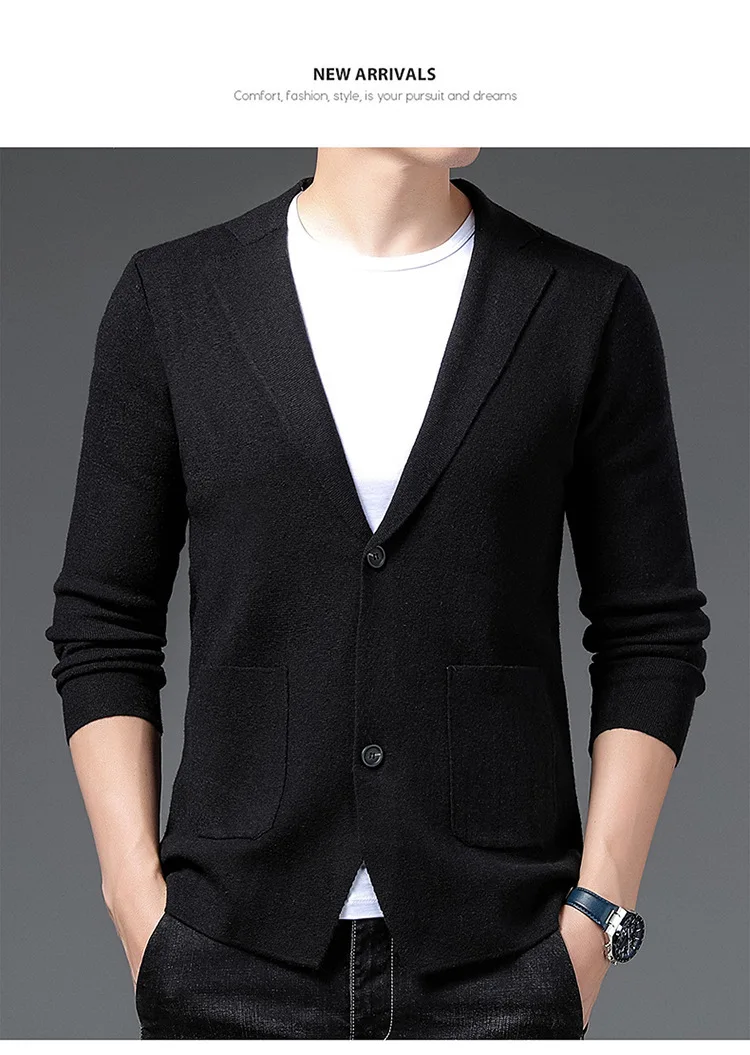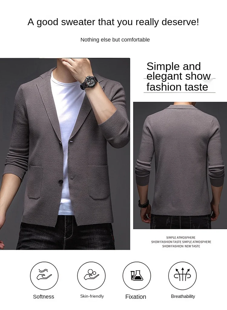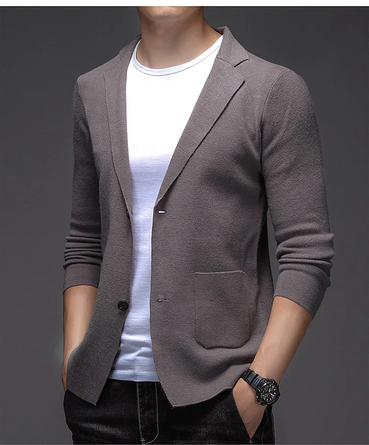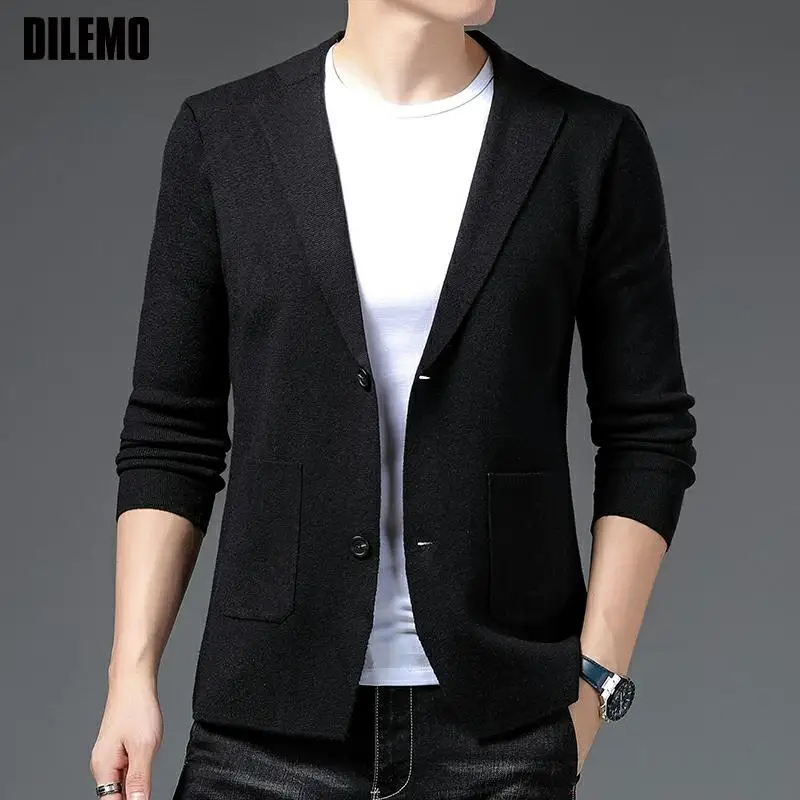 Высококачественный новый дизайнерский брендовый Повседневный модный простой приталенный мужской вязаный Блейзер элегантная мужская одежда