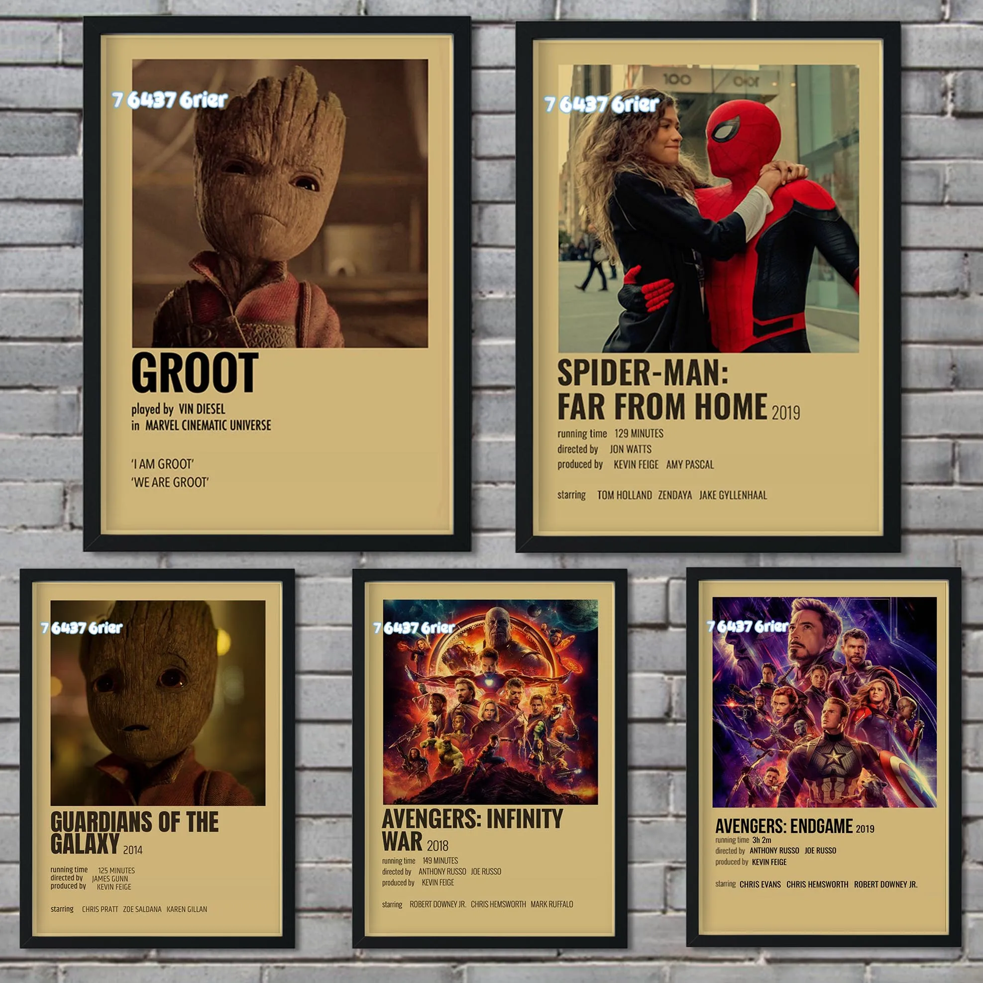 Постер серии Marvel с супергероями, декоративный Рисунок из крафт-б...