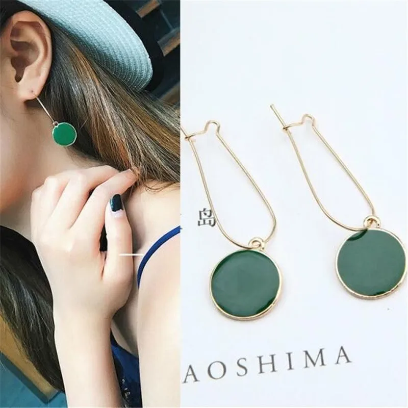 Панк 2018 Новые Модные Серьги геометрический дикий зеленый круг све...