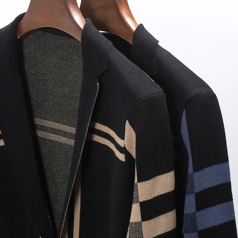 Новый дизайнерский роскошный брендовый Повседневный модный приталенный мужской вязаный блейзер в клетку, элегантная мужская одежда высшего качества 2022