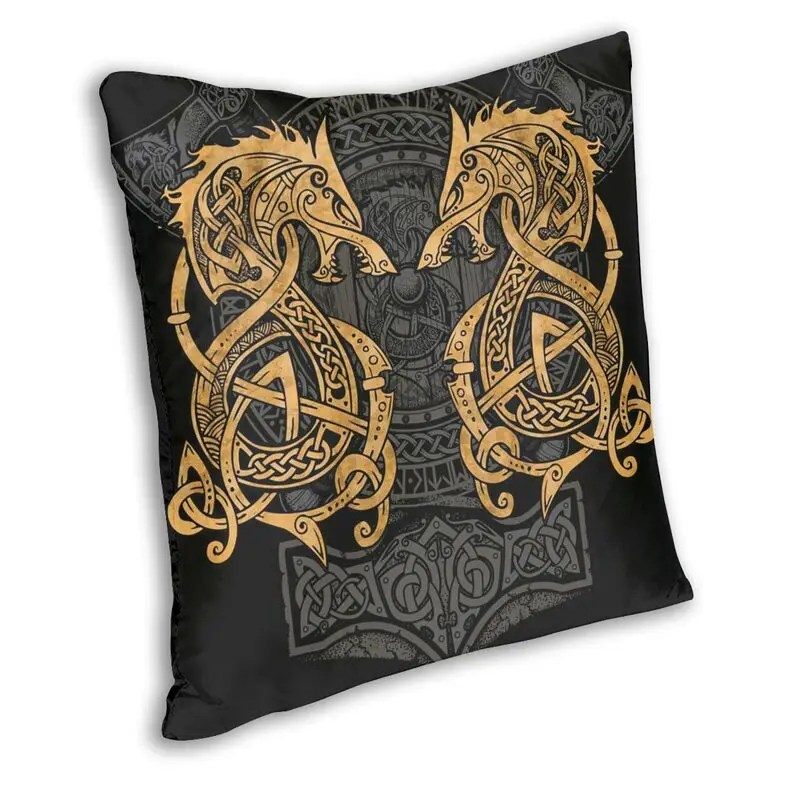 Квадратная наволочка с рисунком "Древо жизни", с руническими узорам...