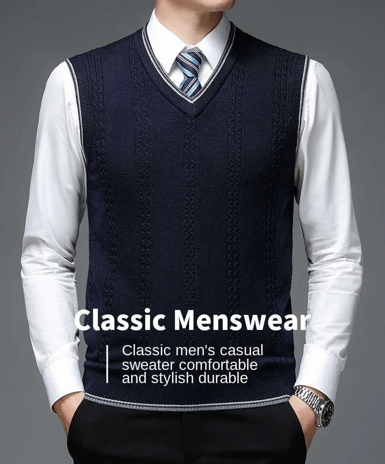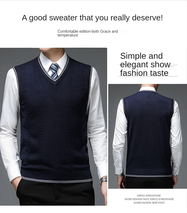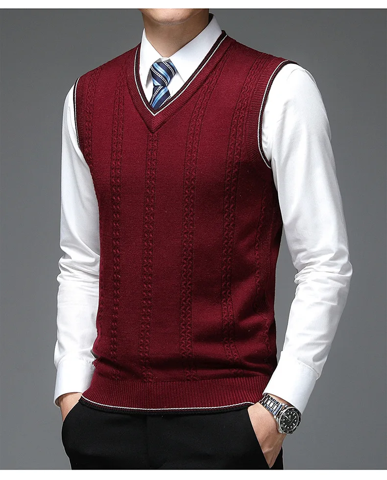 Пуловер мужской с V-образным вырезом, 6% шерсть, без рукавов