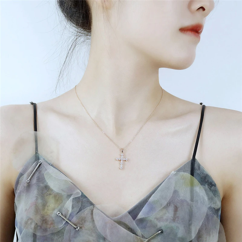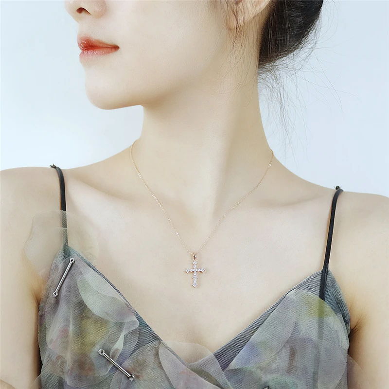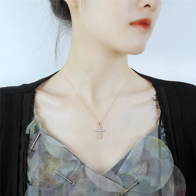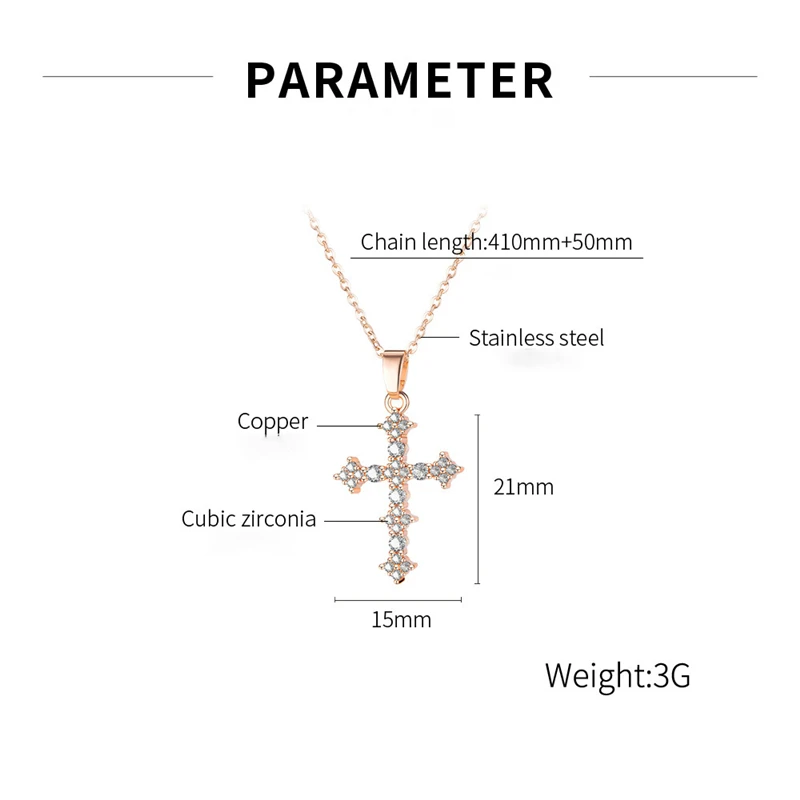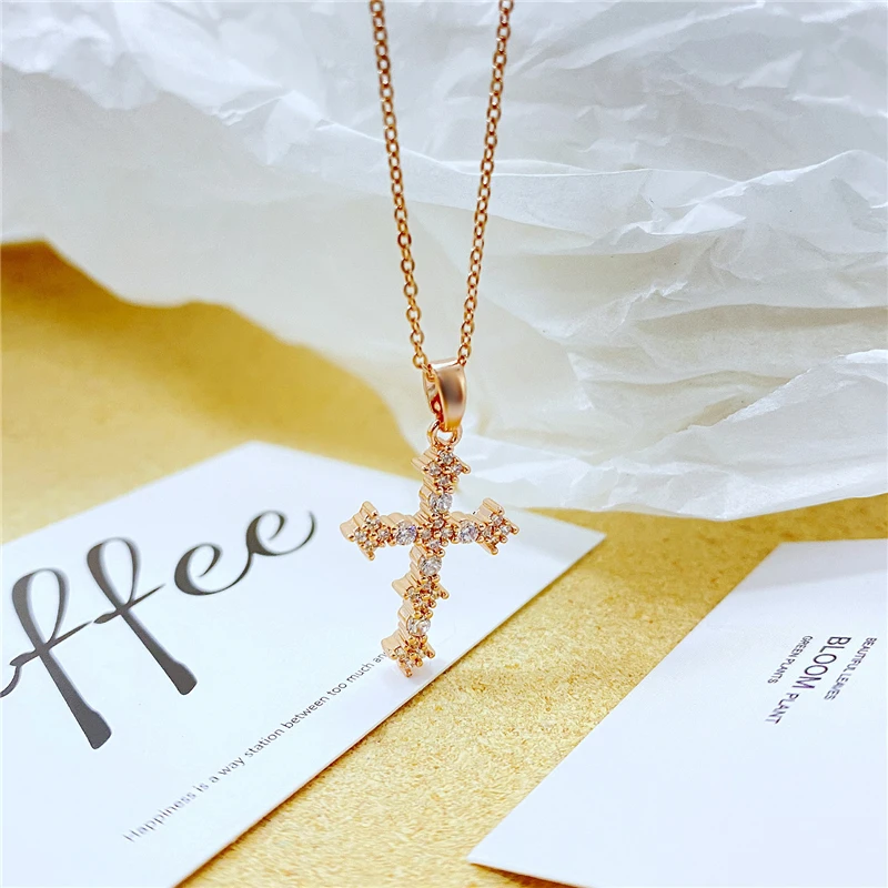 Ожерелье из нержавеющей стали под розовое золото для женщин, медный набор с Иисусом, католицизм, цепочка с кулоном в виде креста из циркония, ювелирные изделия на шею