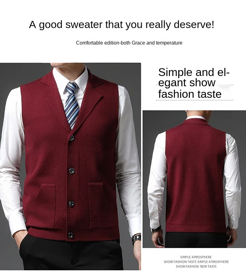 Пуловер мужской с V-образным вырезом, 6% шерсть, без рукавов