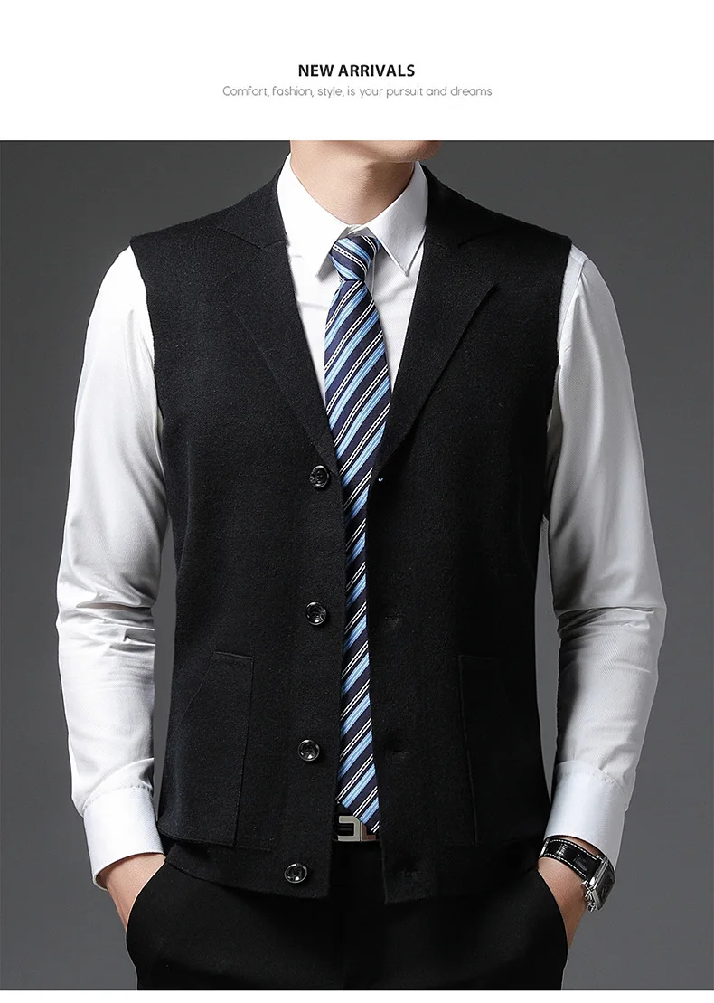 Мужской однотонный пуловер без рукавов, повседневный вязаный жилет ...