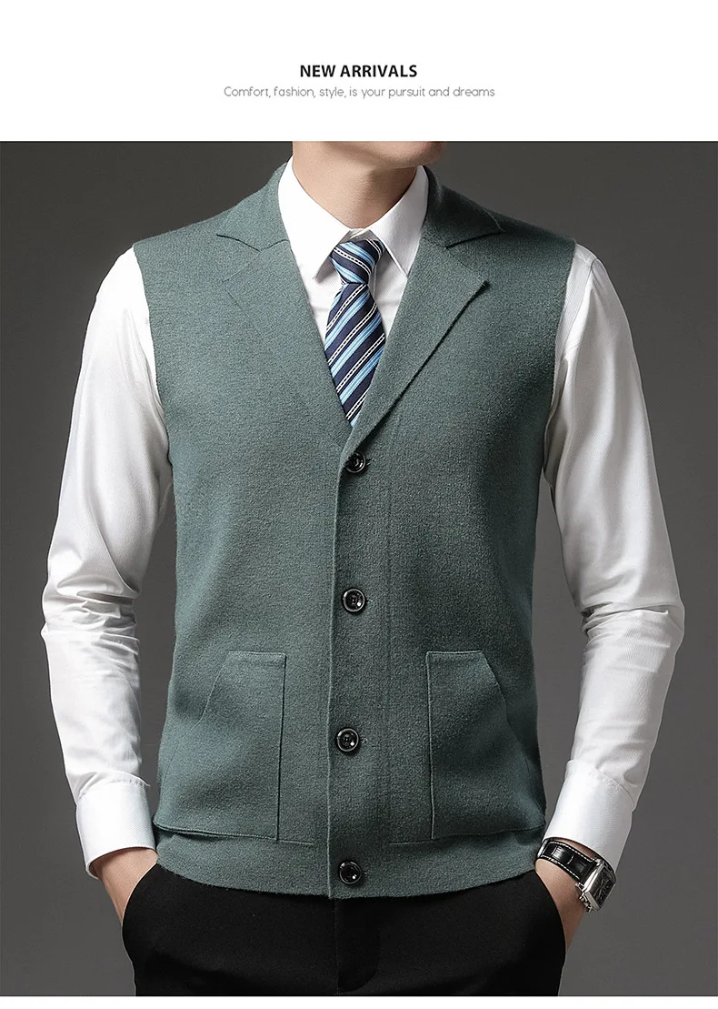 Высококачественный вязаный кардиган высокого качества с отворотами, без рукавов