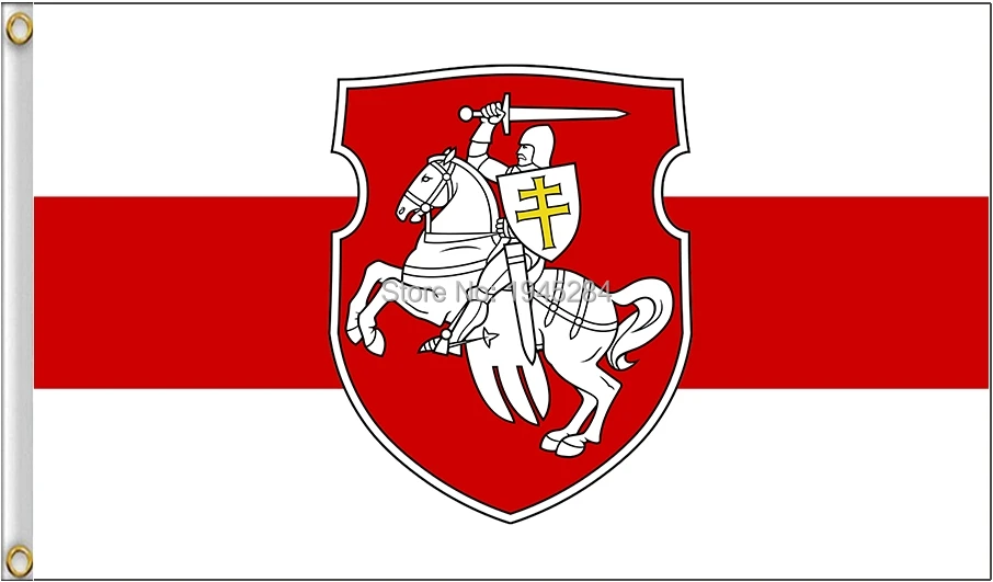 Беларусь, белый рыцарский флаг, герб оружия, модель на заказ, 3x5 футов, 90x150 см, полиэстер