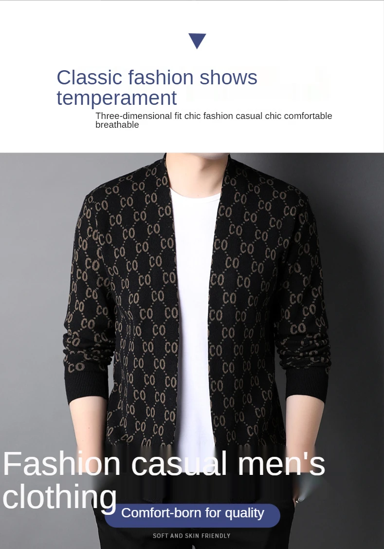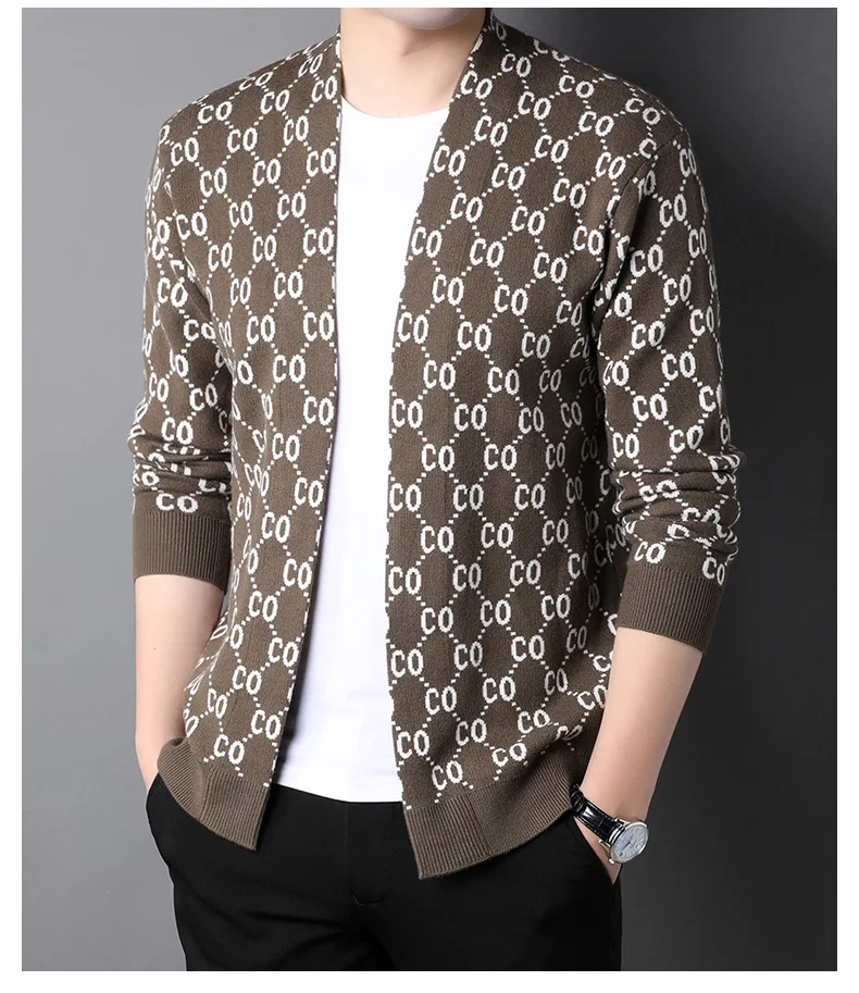 Кардиган мужской вязаный, брендовый Роскошный дизайнерский свитер, ...