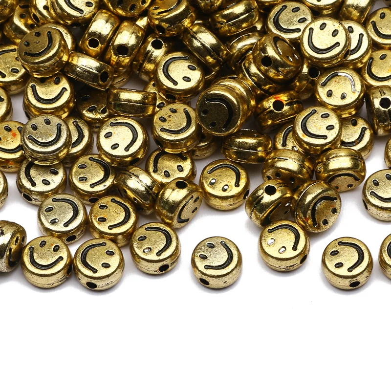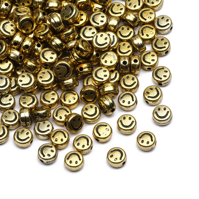 Позолоченные Акриловые круглые бусины, круглые бусины-Распорки со смайликом для изготовления ювелирных изделий сделай сам, браслетов, ожерелий, аксессуары 4x7 мм