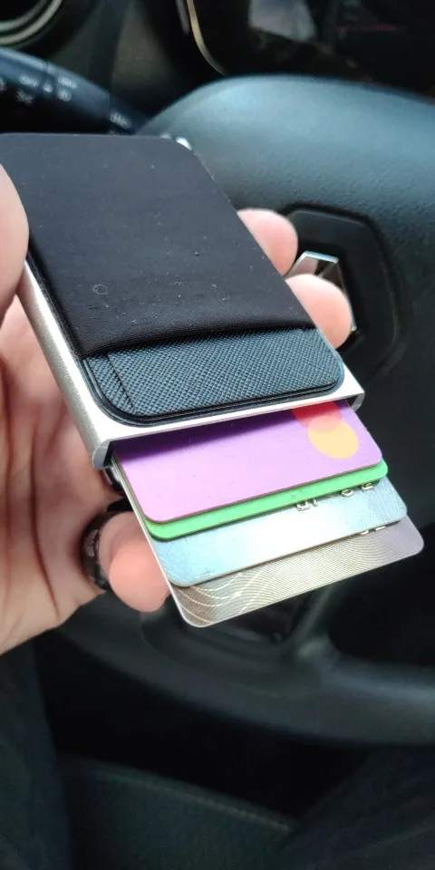 Прибыл быстро и соответствует описанию. Хороший маленький органайзер для карт и наличных денег