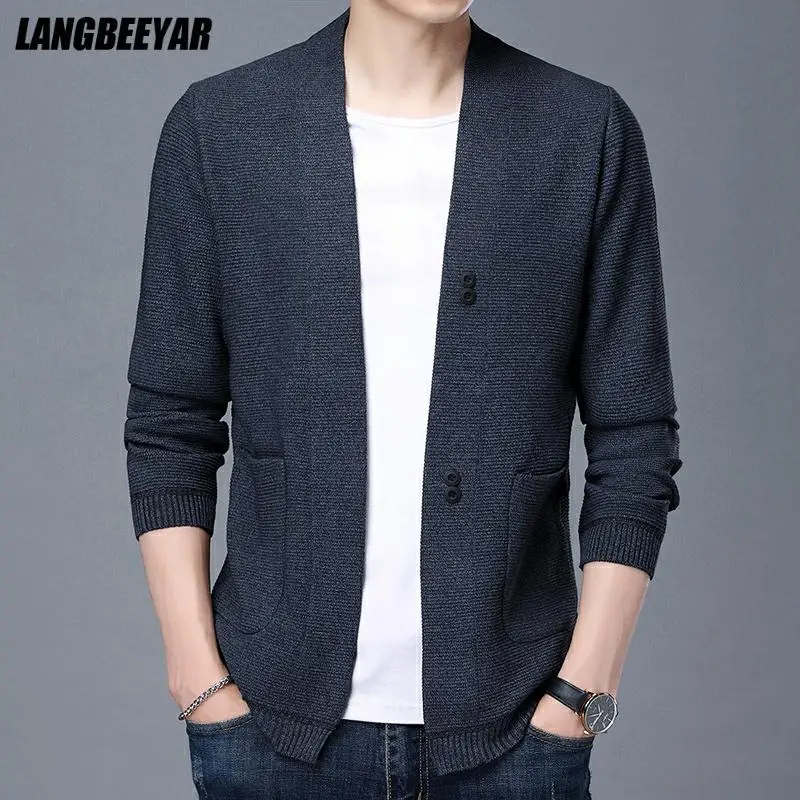 Высокое качество, новый осенне-зимний брендовый модный вязаный кардиган, открытый вязаный свитер, мужские винтажные повседневные пальто, куртка, Мужская одежда