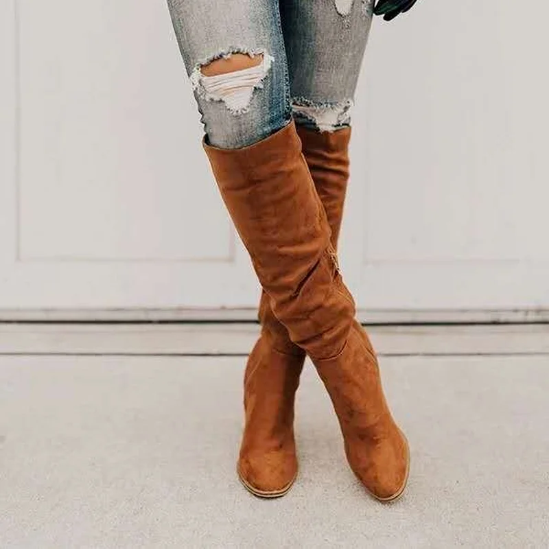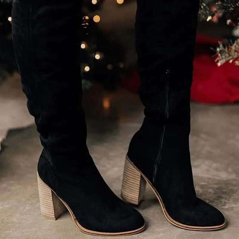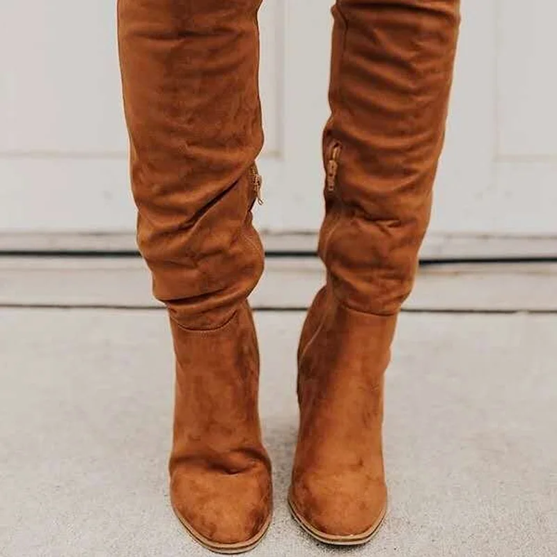 Новинка 2021, женская обувь, замшевые ботинки-мартинсы, на Высоком толстом каблуке, с боковой молнией, выше колена, модная женская обувь