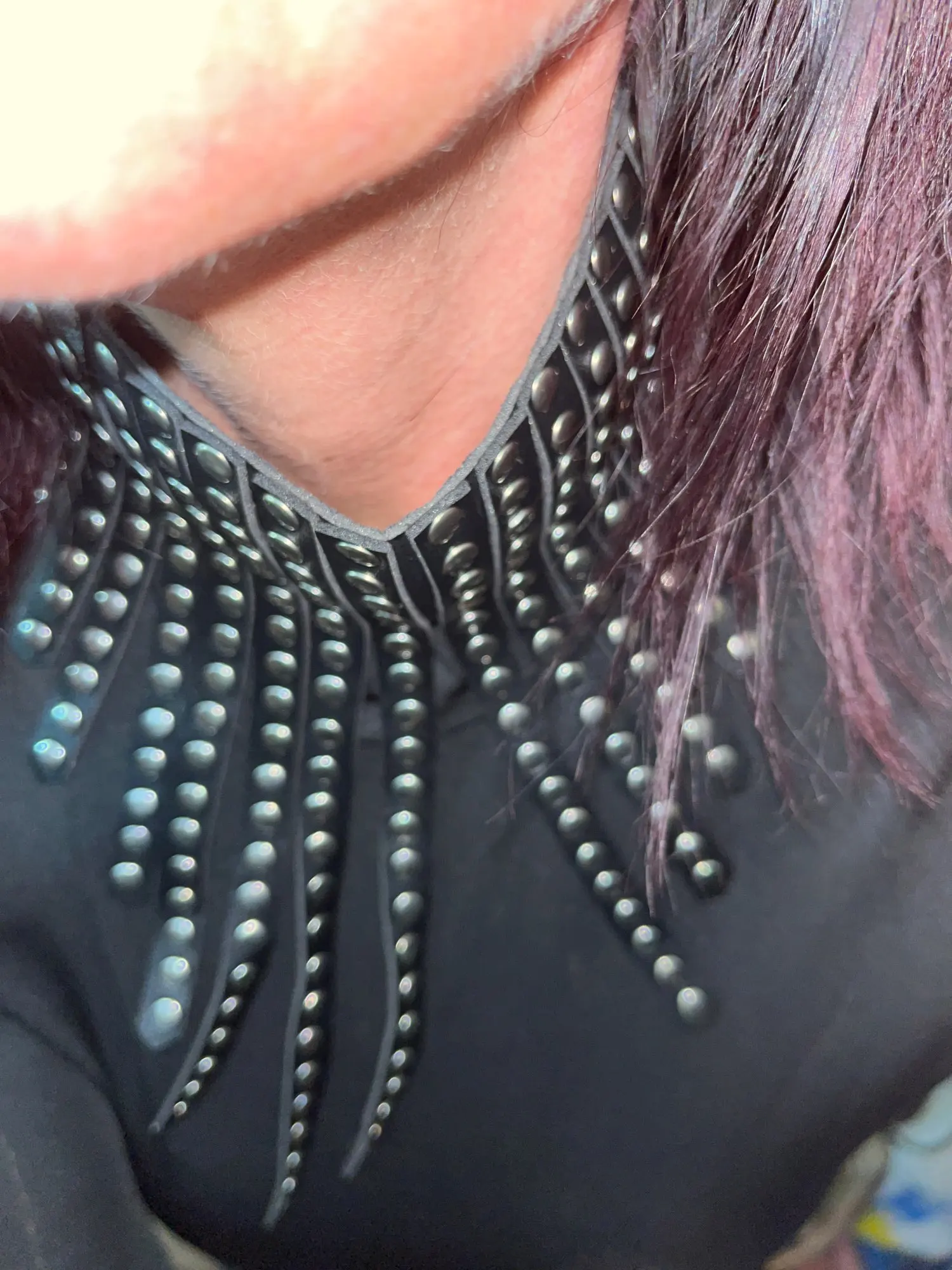 Слишком большой Размер, это красиво, но для гигантской Мужской шеи. Высота ремешка высокая на шее, но хорошо, просто заполняет всю длину шеи. Но он включен, но, чтобы закрыть даже на самых маленьких, это около 3 ”слишком большой выглядит плохо на слишком свободно