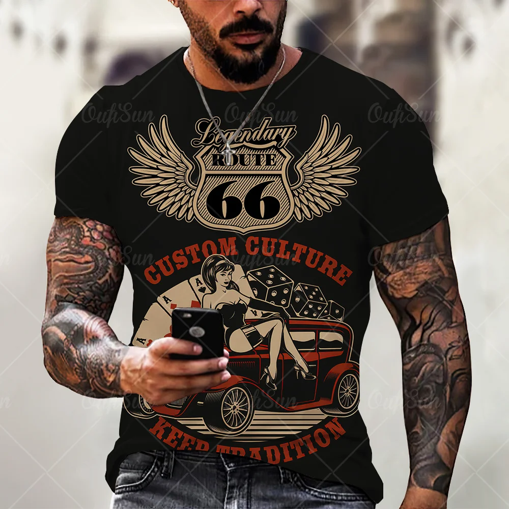 Футболка мужская оверсайз с коротким рукавом, модная винтажная рубашка с принтом в виде 66 букв, с круглым вырезом, свободная одежда, лето
