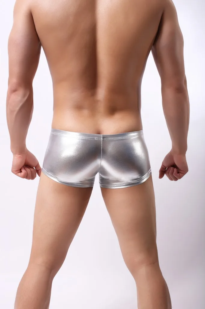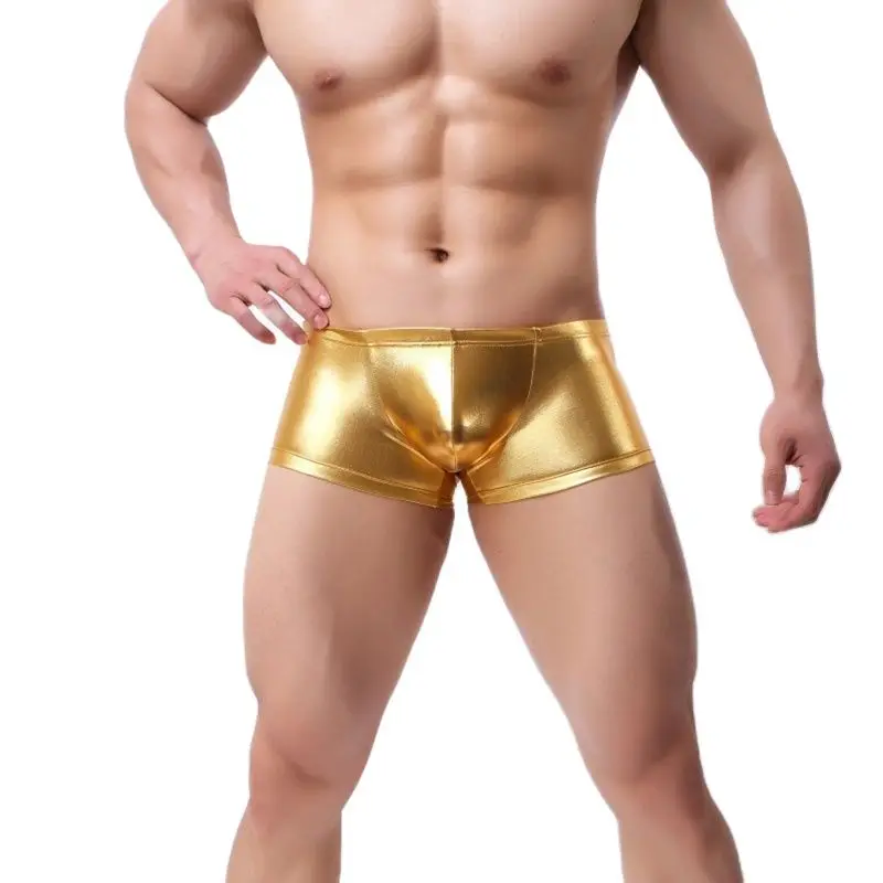 Боксеры мужские с U-образным выпуклым мешочком, нижнее белье из лакированной кожи, блестящие трусы с эффектом влажного вида, крутые шорты, кожаные боксеры