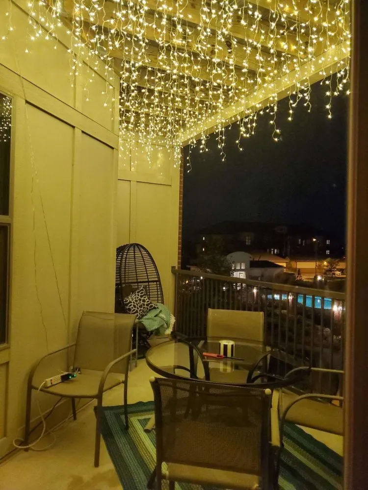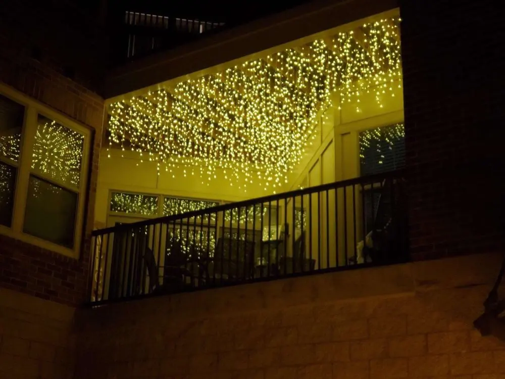 Я увидел изображение внутреннего дворика в Pinterest и захотелось воссоздать его. Я повсюду искал идеальные сосульки для внутреннего дворика. Они были либо слишком короткими, либо имели плохие отзывы. Я наконец-то обосновался в них и не мог быть более счастливым. Мы соединили 3 нити, как советуют направления, и свет очень яркий. У нас действительно был штормовой удар, и концы немного ржавели, но это не вызвало никаких проблем. Если будут проблемы, я обновлю свой отзыв.