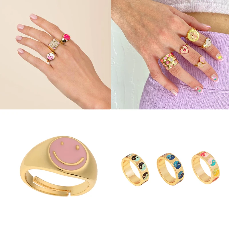 Неоновое эмалированное кольцо, высокое качество, позолота 18 карат, кольцо Shirley Temple, кольцо в форме сердца