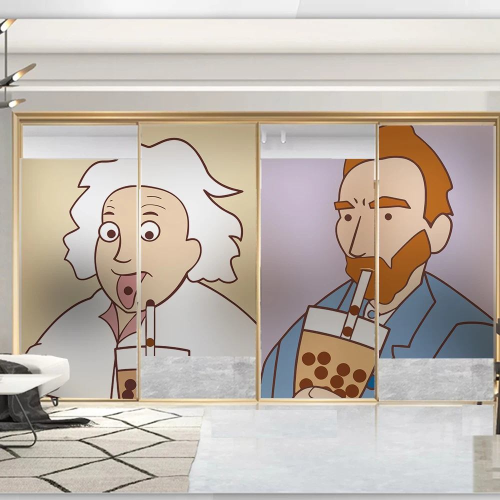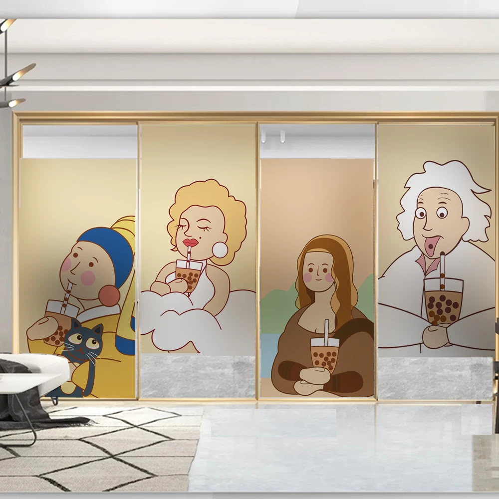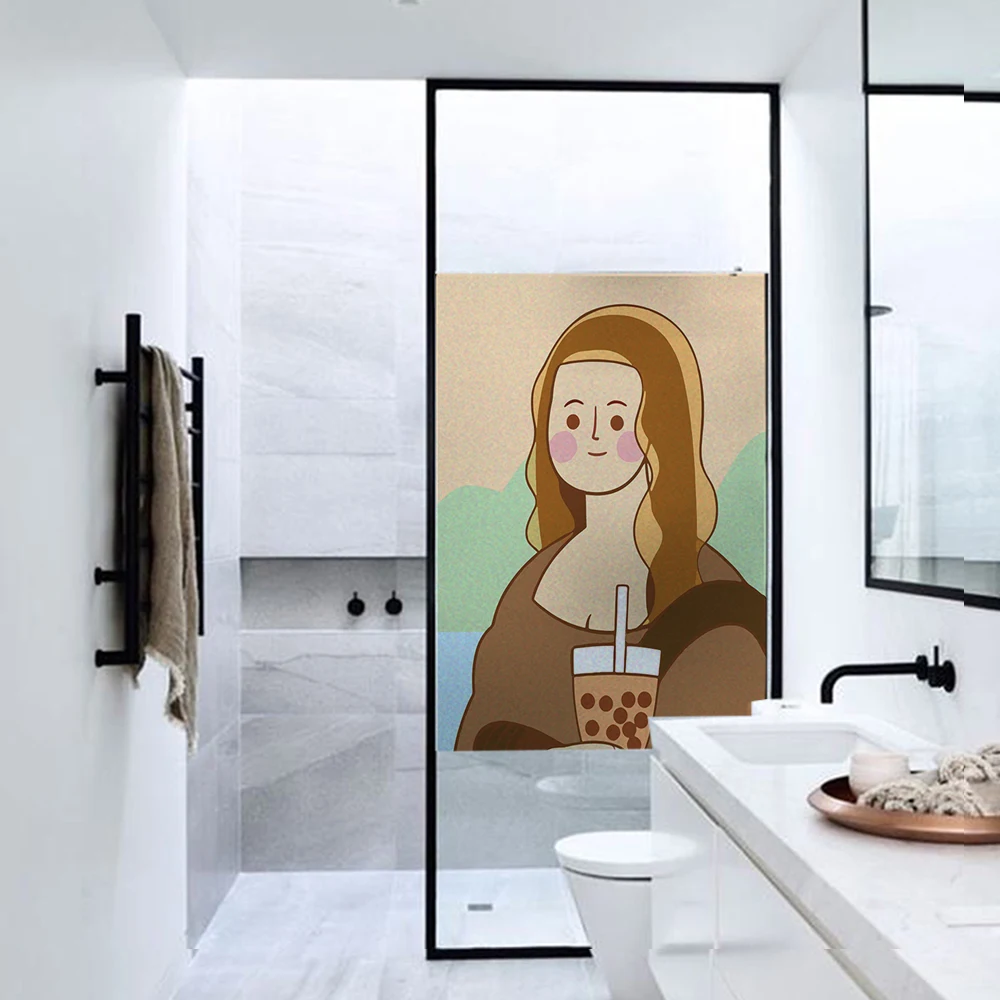 Забавный домашний декор, матовое стекло, оконная пленка, Мона Лиза Эйнштейн, оконная наклейка для защиты конфиденциальности, пленка для спальни, наклейка 120 см