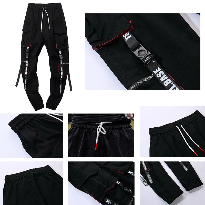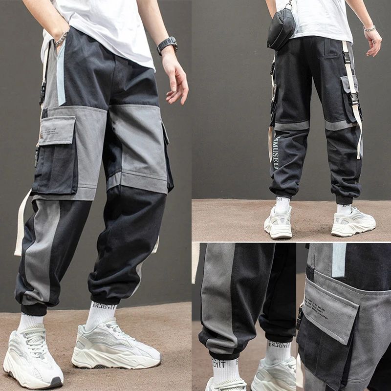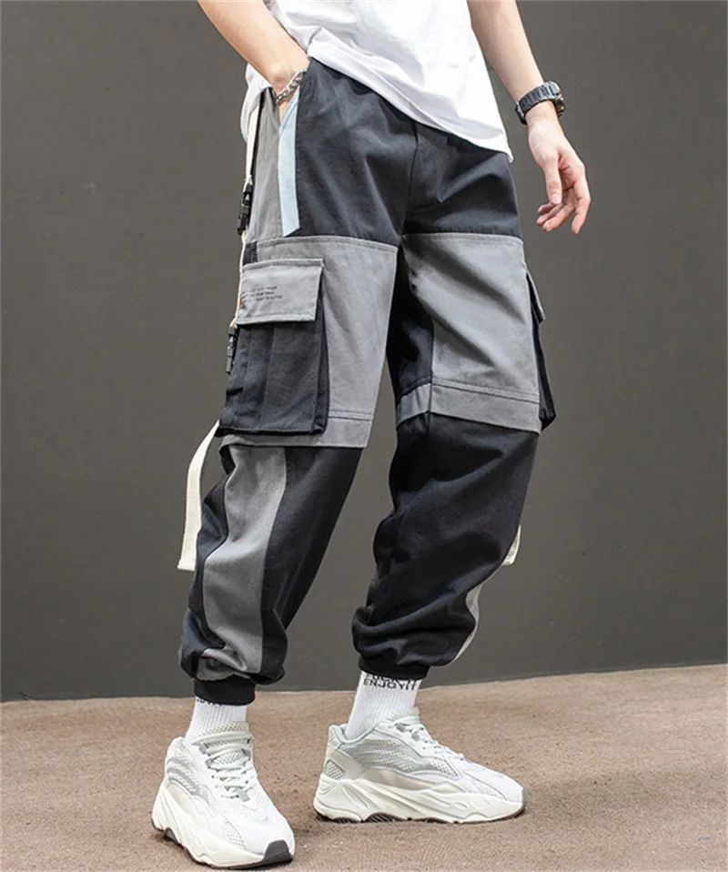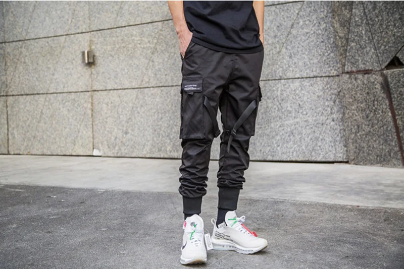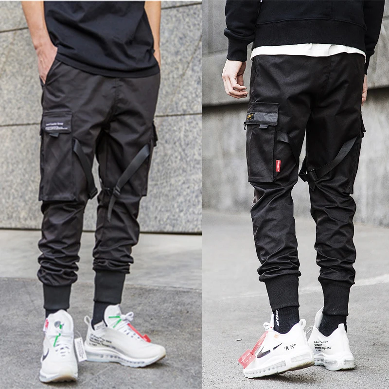 Джоггеры 2020, брюки-карго для мужчин, повседневные мужские брюки с карманами в стиле хип-хоп, тренировочные штаны, уличная одежда, штаны Techwear с лентами