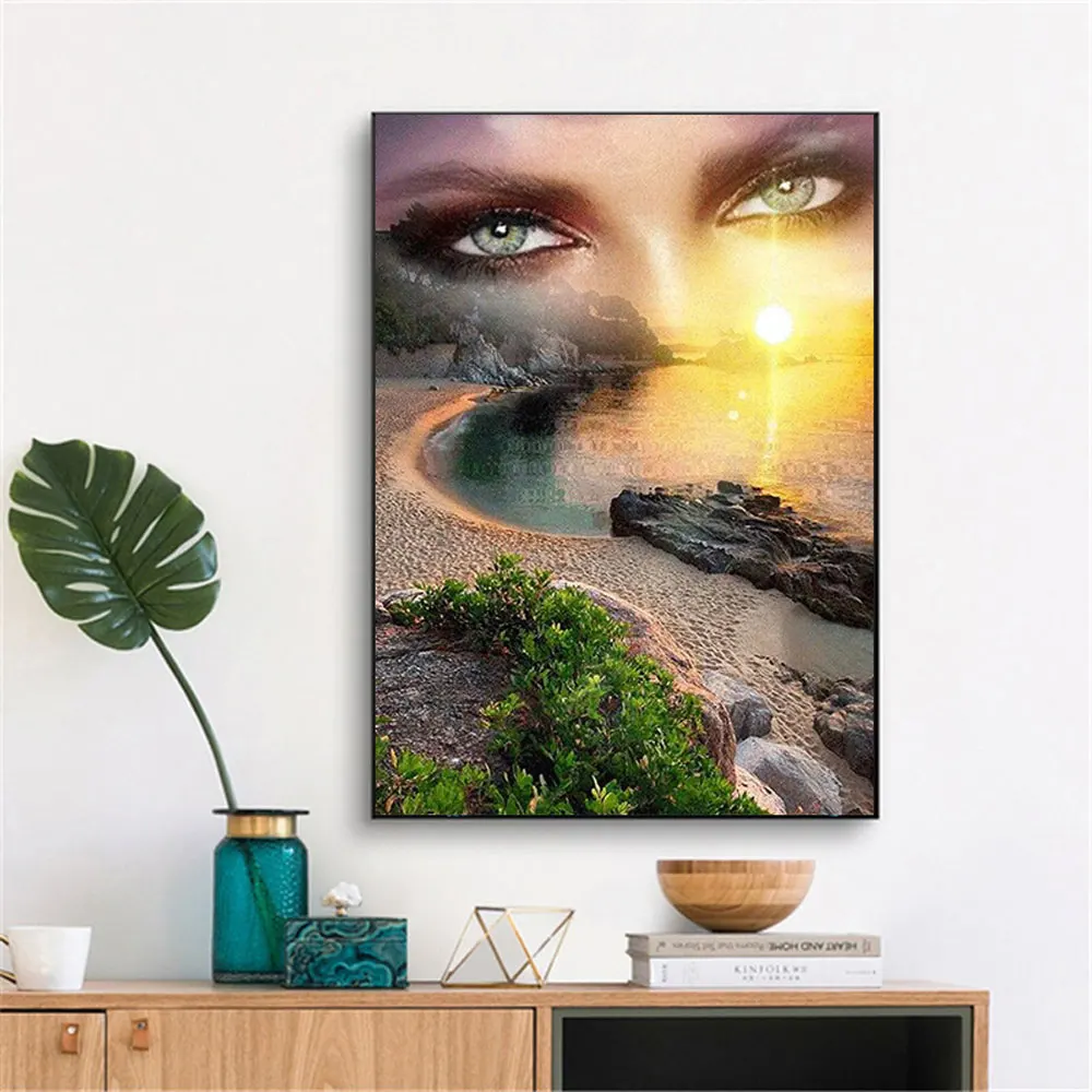 Полноформатнаякруглая алмазная живопись, мозаика, пейзаж, алмазная вышивка, глаза, женщина, пейзаж, вышивка крестиком, сделай сам, домашний декор, подарки