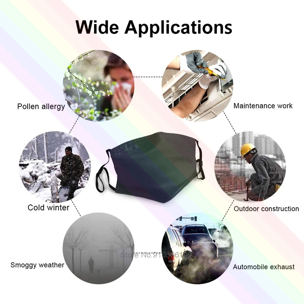 Подходит для большинства людей на открытом воздухе, для проживания или путешествий в районы с высоким уровнем загрязнения воздуха.Защита от газов, запахов, пыльцы, дымки, пыли, всех PM,PM2.5, PM0.3, дыма.Маски можно стирать, и фильтр можно заменить.Маски имеют отличный эффект фильтрации, потому что они имеют 5 слоев фильтра.Хлопковое волокно с активированным углем и фильтрующий материал, легко дышать.Лабораторная технология фильтрации фильтрует почти 100% загрязнения, газов, запахов, пыли, пыльцы, смога, PM2.5.Регулируемый переносица: в зависимости от Назального типа каждого человека, чтобы настроить, сделать маску и нос лучше подходят, увеличить эффект запечатывания маски,Избегайте дыхания, вызванного туманом очков. Эластичные и регулируемые ушные петли, подходят для большинства взрослых и детей,Размер можно регулировать, чтобы соответствовать большинству типов головы.