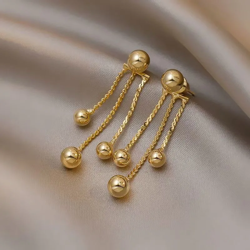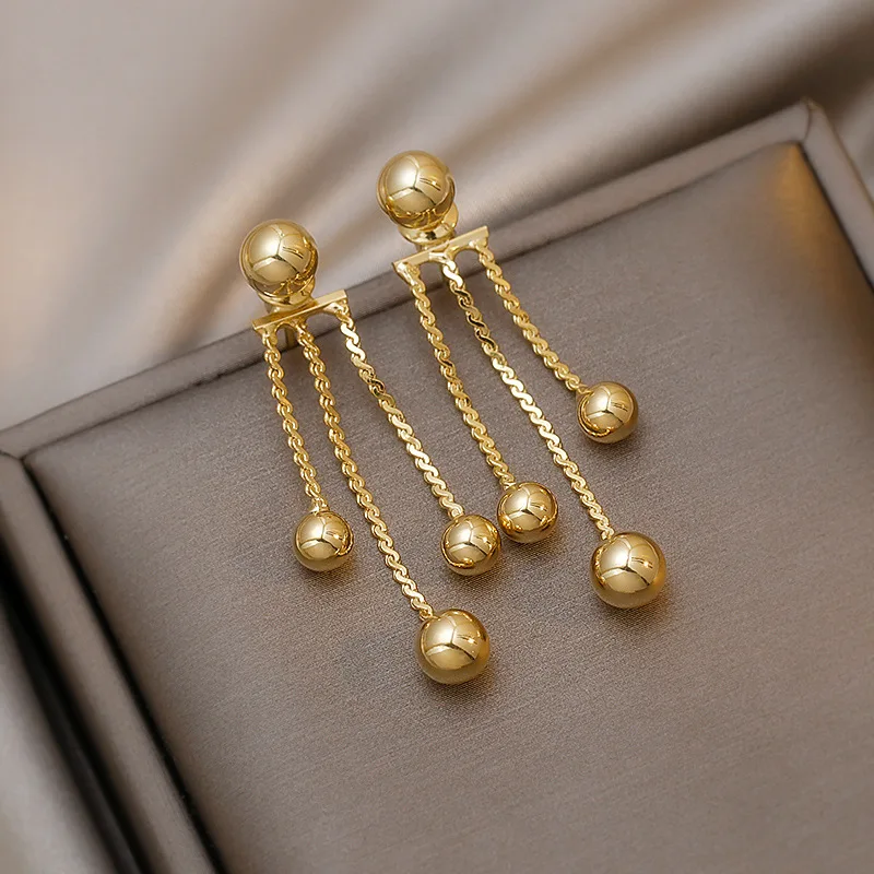 Название: Золотые круглые серьги с бусинами, женские серьги с кисточками, тренд 2021, изысканные металлические висячие серьги в стиле ретро, повседневные ювелирные аксессуары