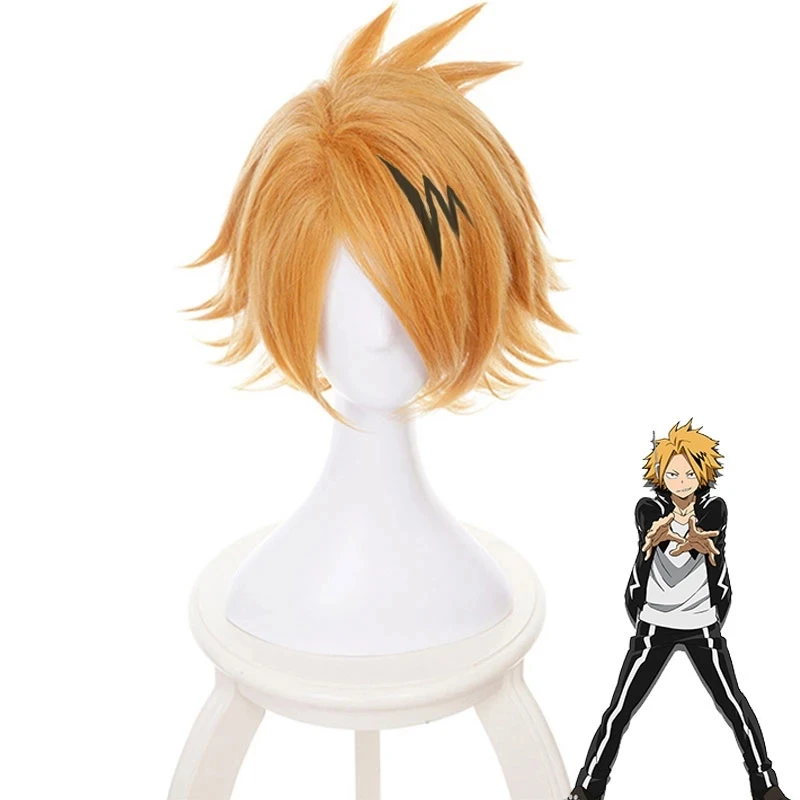 Парик для косплея моя геройская Академия боку нет героев Академия каминари денки короткий термостойкий синтетический с черным отбеливанием + шапочка для парика