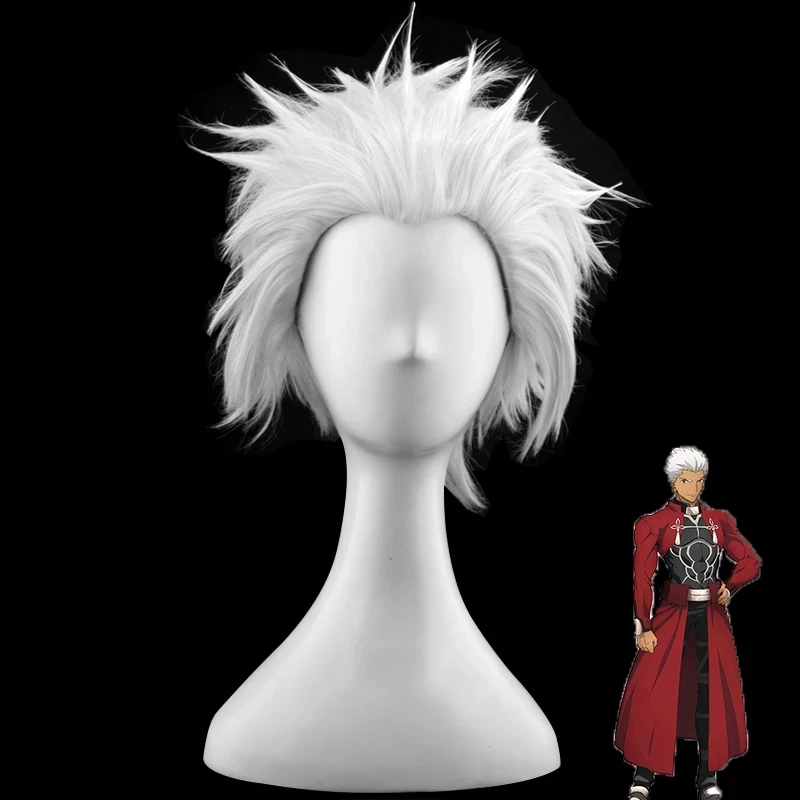 Fate/stay Night Emiya Shirou Archer, серебристо-серый короткий парик для косплея, термостойкий синтетический костюм, вечерние парики + Бесплатный парик