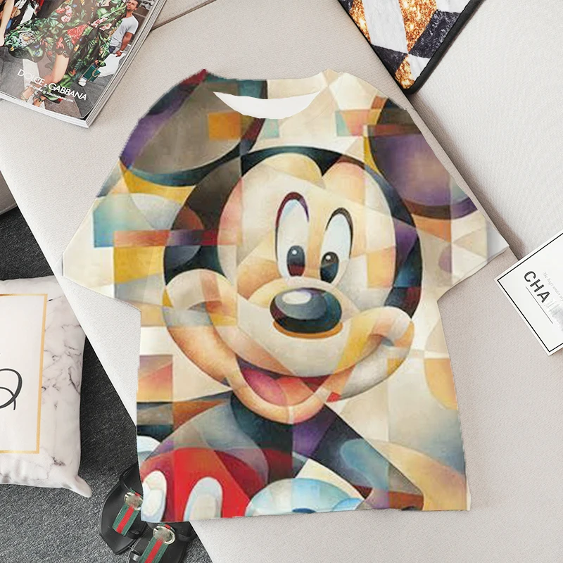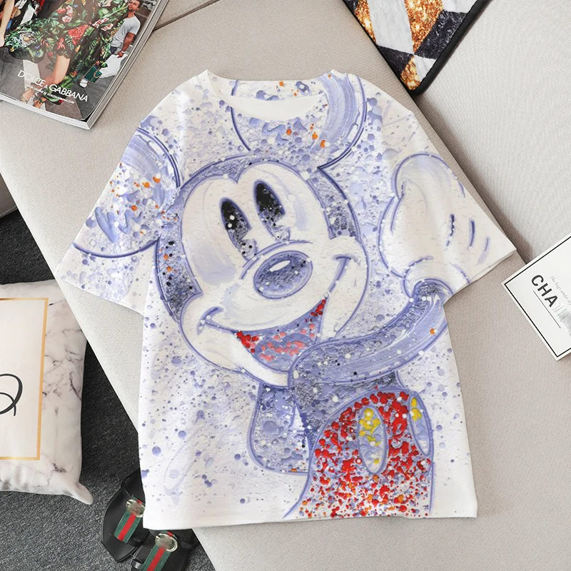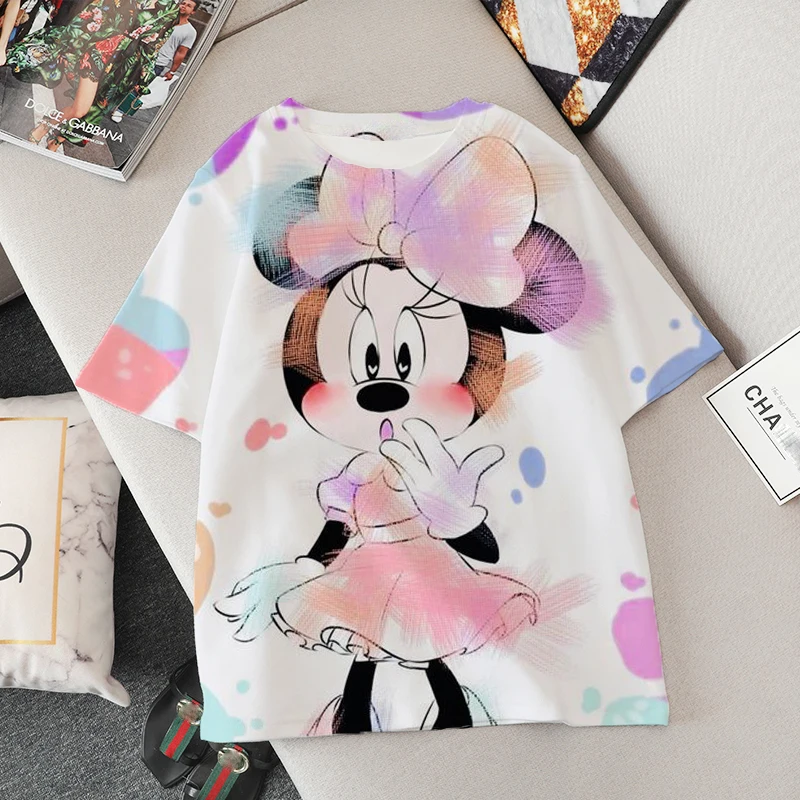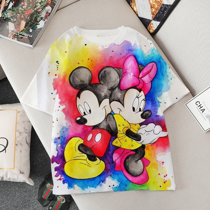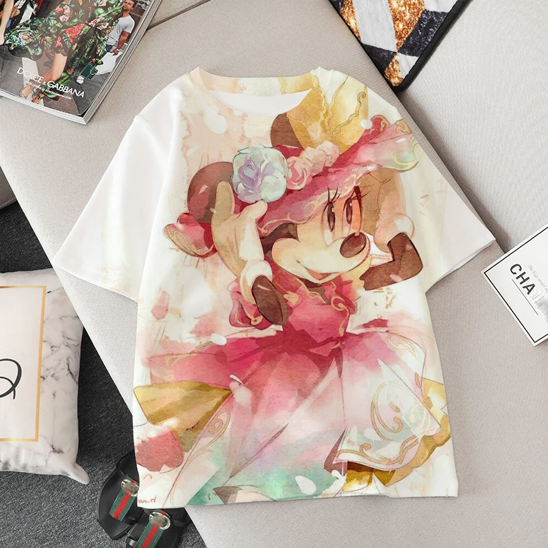 Женская футболка с коротким рукавом, летняя футболка большого размера в стиле ольччан с 3d-изображением Диснея, Микки, Минни, Харадзюку, y2k