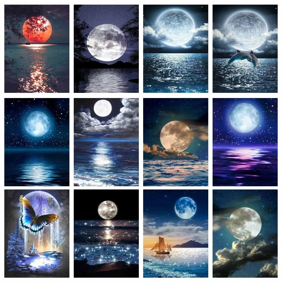 AB красочная Алмазная вышивка мозаика Луна полная квадратная алмазная живопись 5D DIY Набор Пейзаж домашний декор