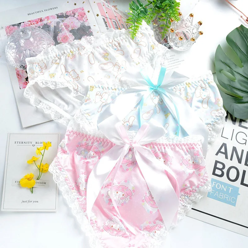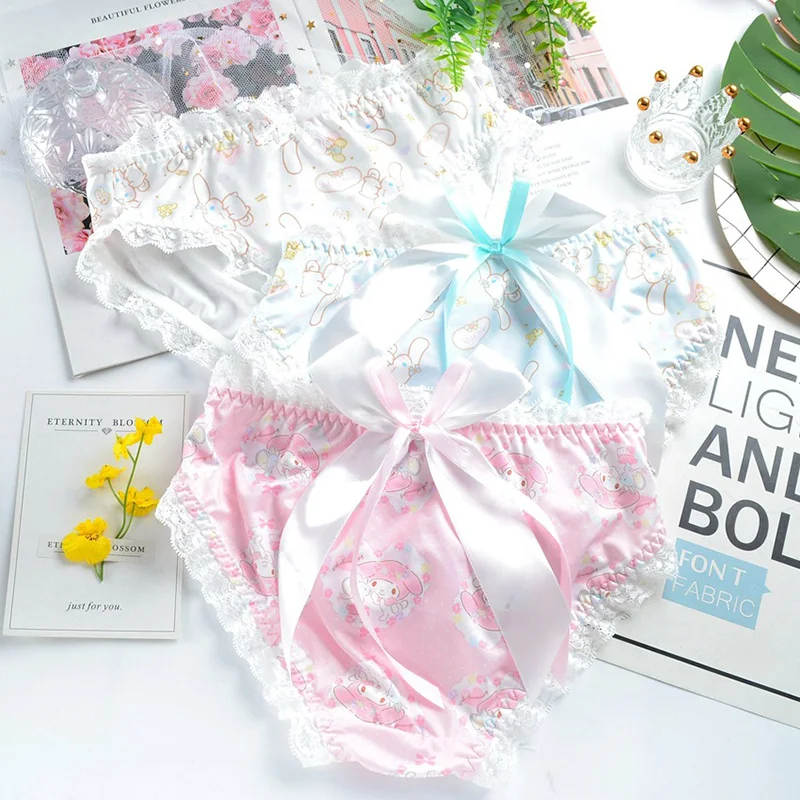 Милое женское нижнее белье в стиле лолита, женское нижнее белье с бантом и кружевными краями, дышащие удобные тонкие эластичные женские трусики A92