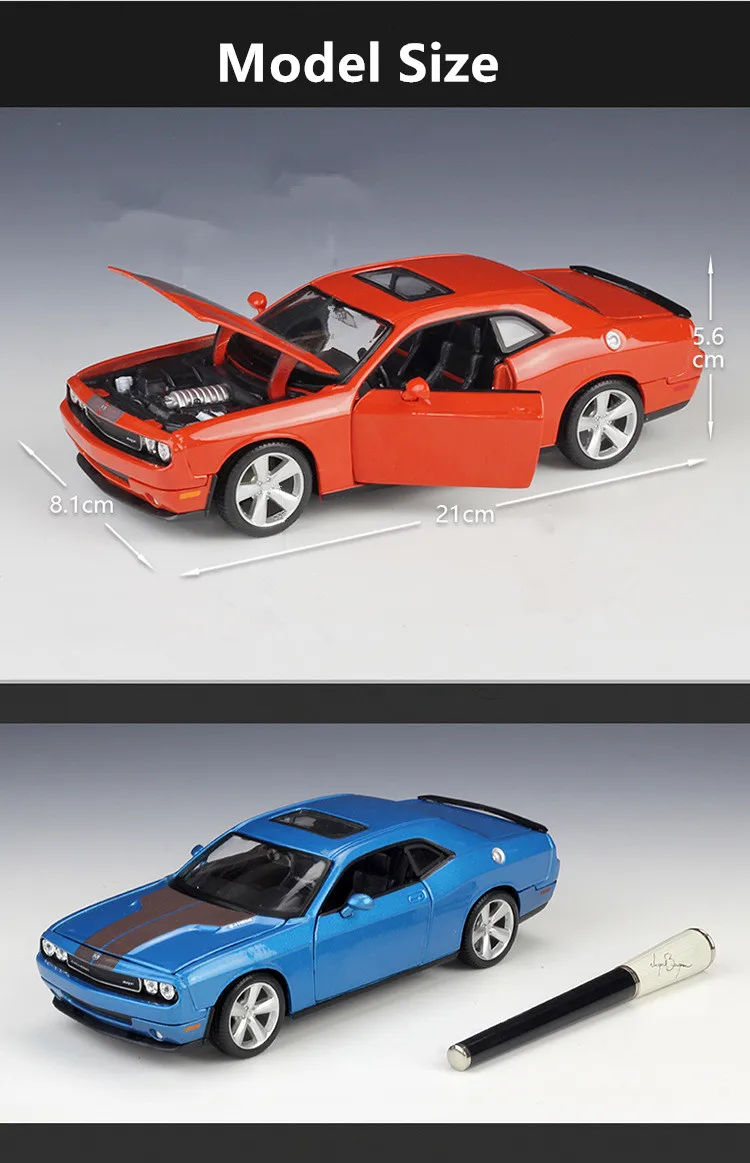 Название: 2008 Dodge Challenger SRT8 Бренд: Maisto Размер: около 21*8,1*5,6 см Масштаб: 1/24 Материал: основной корпус-цинковый сплав, другие-АБС и Резина