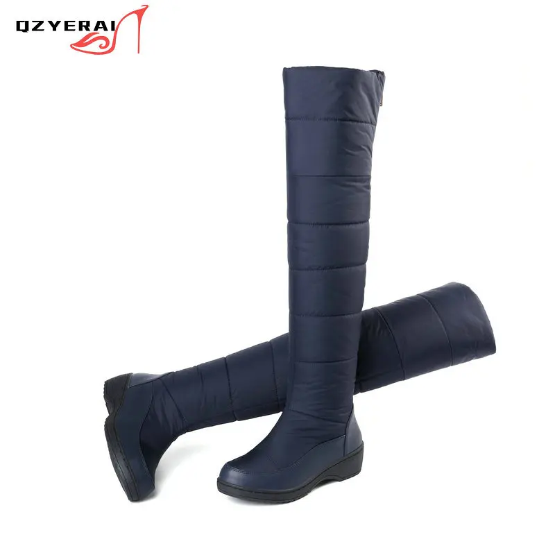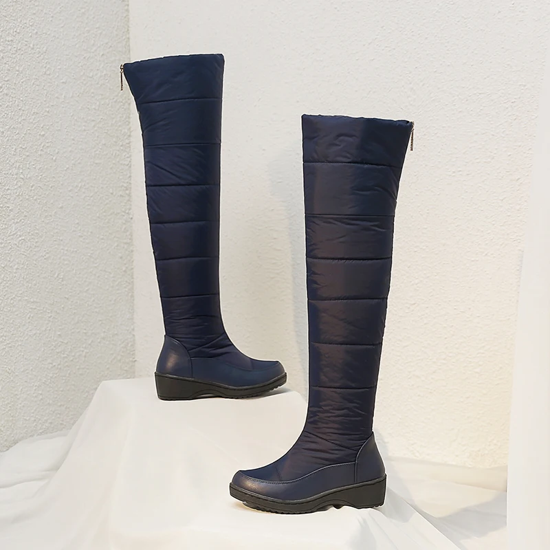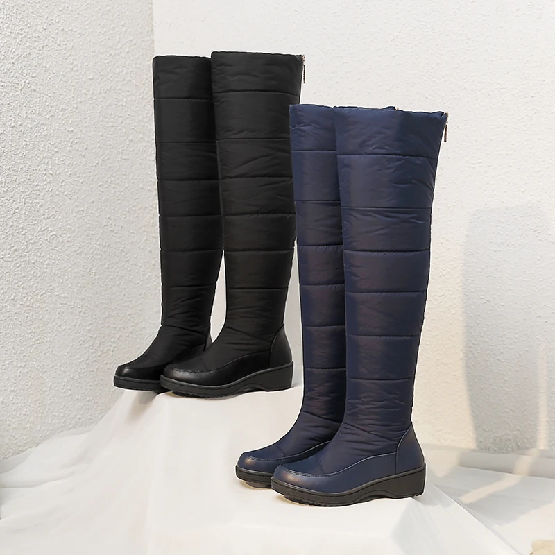 Сапоги женские зимние выше колена, на меху, на танкетке, 2021, непромокаемые, Нескользящие, женские туфли на платформе