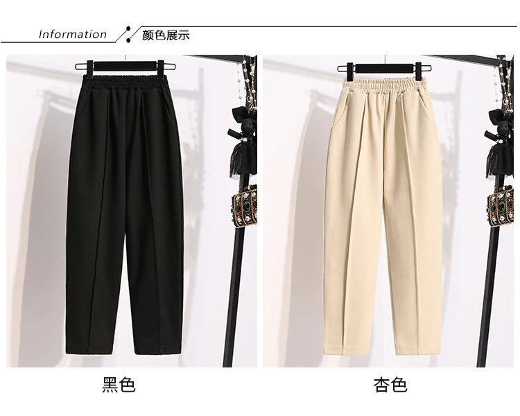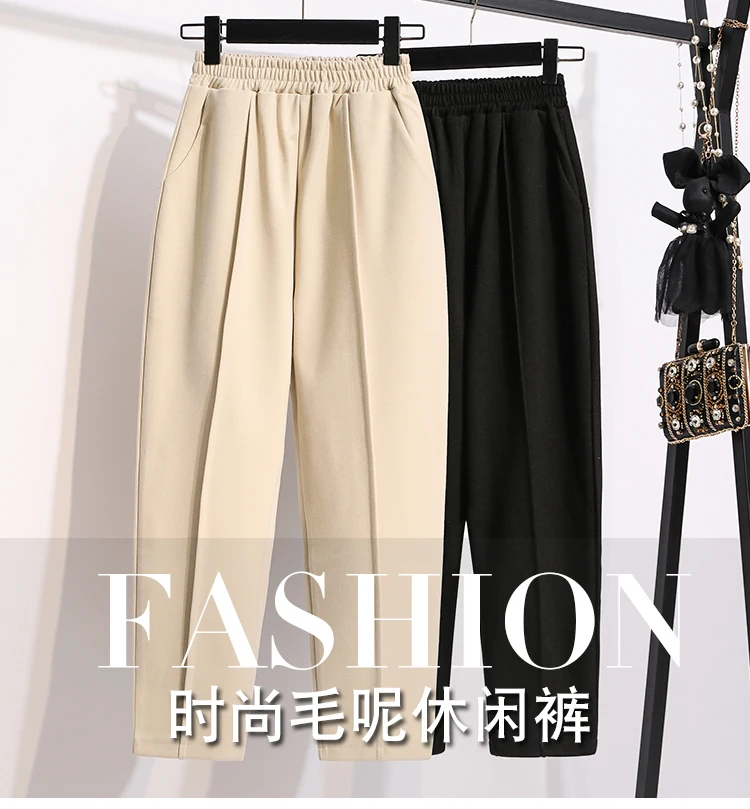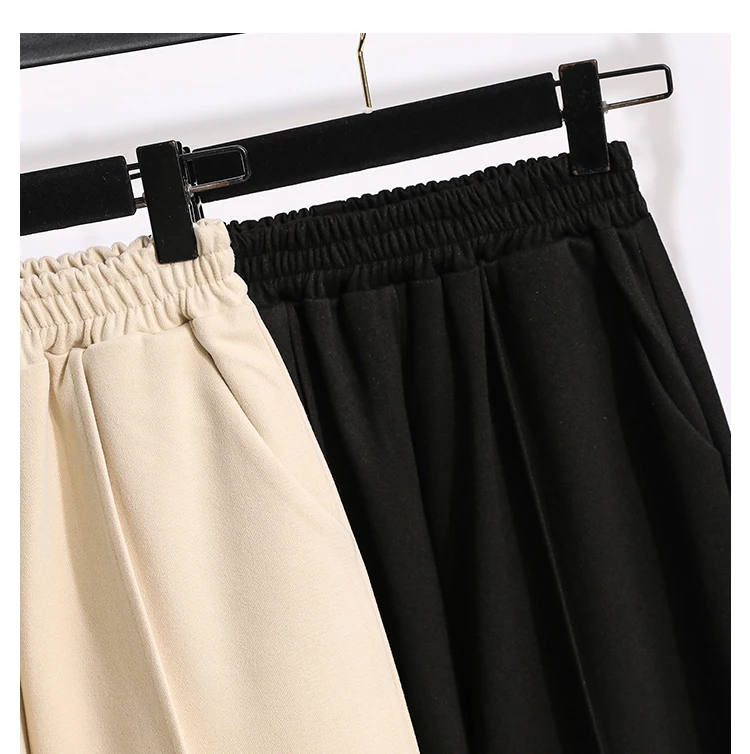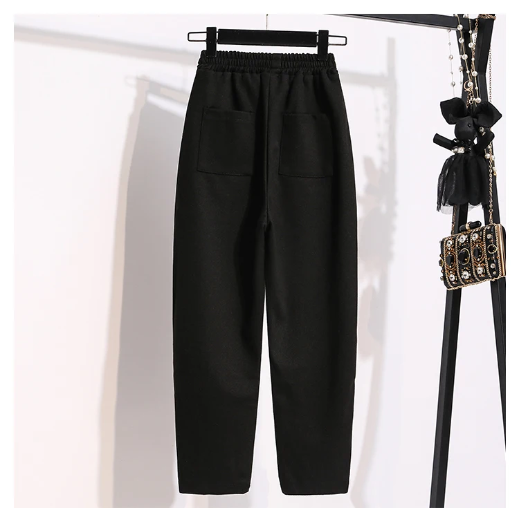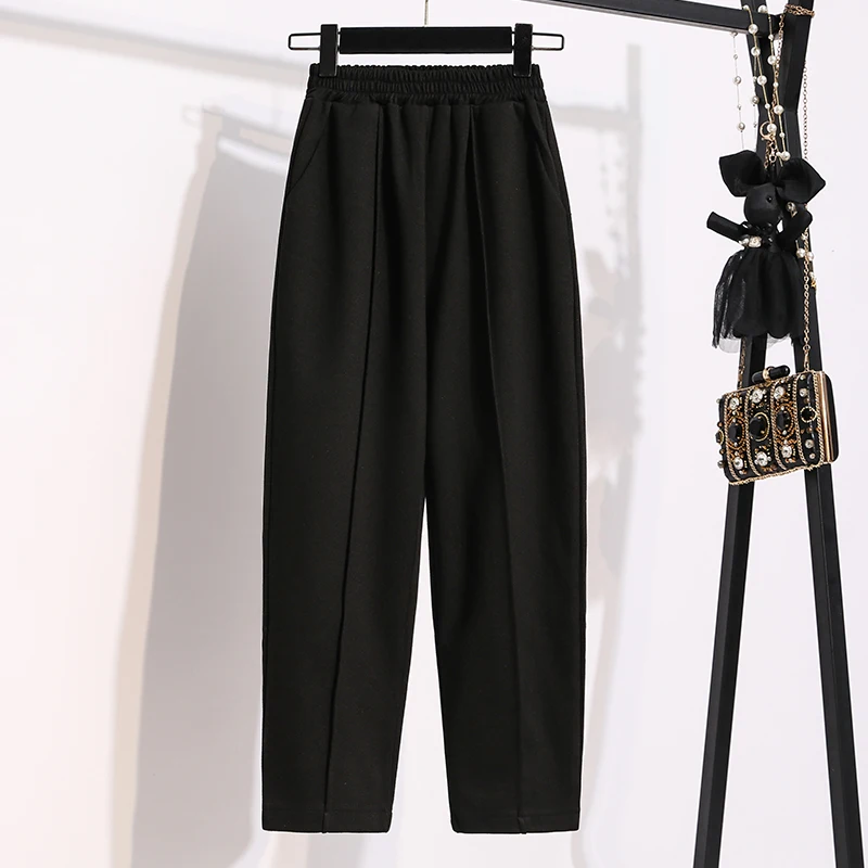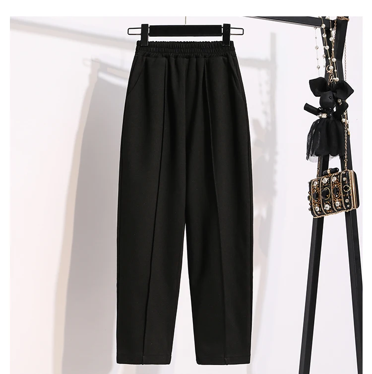 Черная ткань большого размера, большие размеры, Корейская винтажная Осенняя Женская одежда, брюки с высокой талией, модные брюки для девочек
