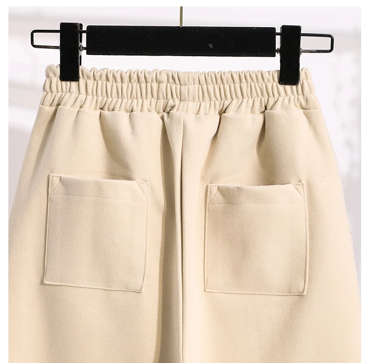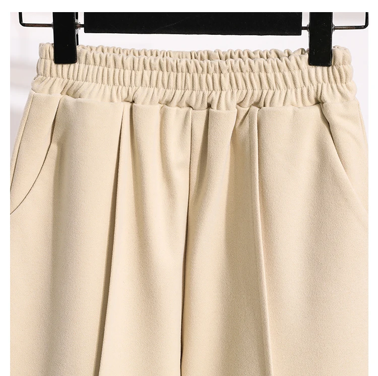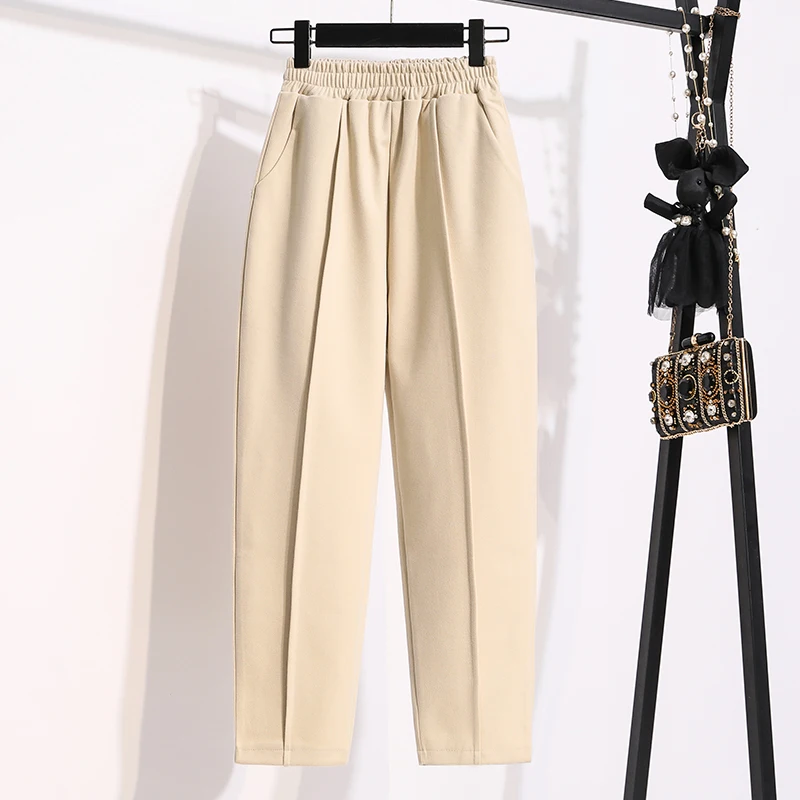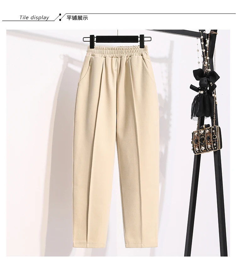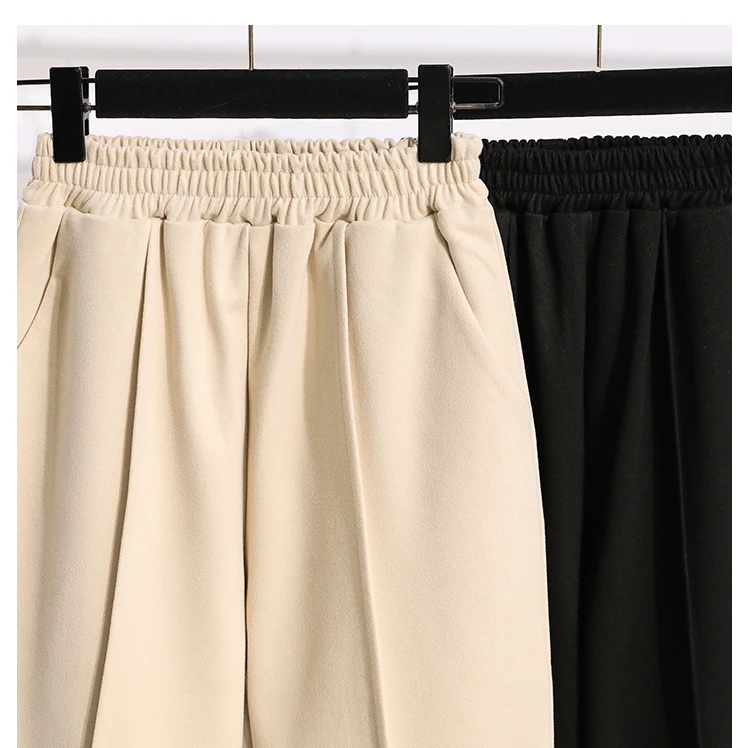 Черная ткань большого размера, большие размеры, Корейская винтажная Осенняя Женская одежда, брюки с высокой талией, модные брюки для девочек