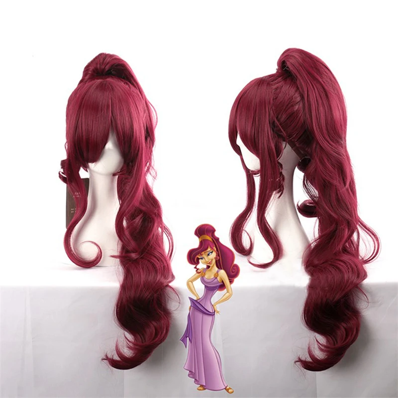 Парик для косплея принцессы мегара, термостойкий синтетический костюм длиной Мег, цвет красного вина, парик для вечеринки, с шапочкой