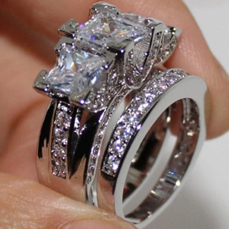 2 шт.компл. кольца Элегантные Роскошные обручальные кольца для женщ...