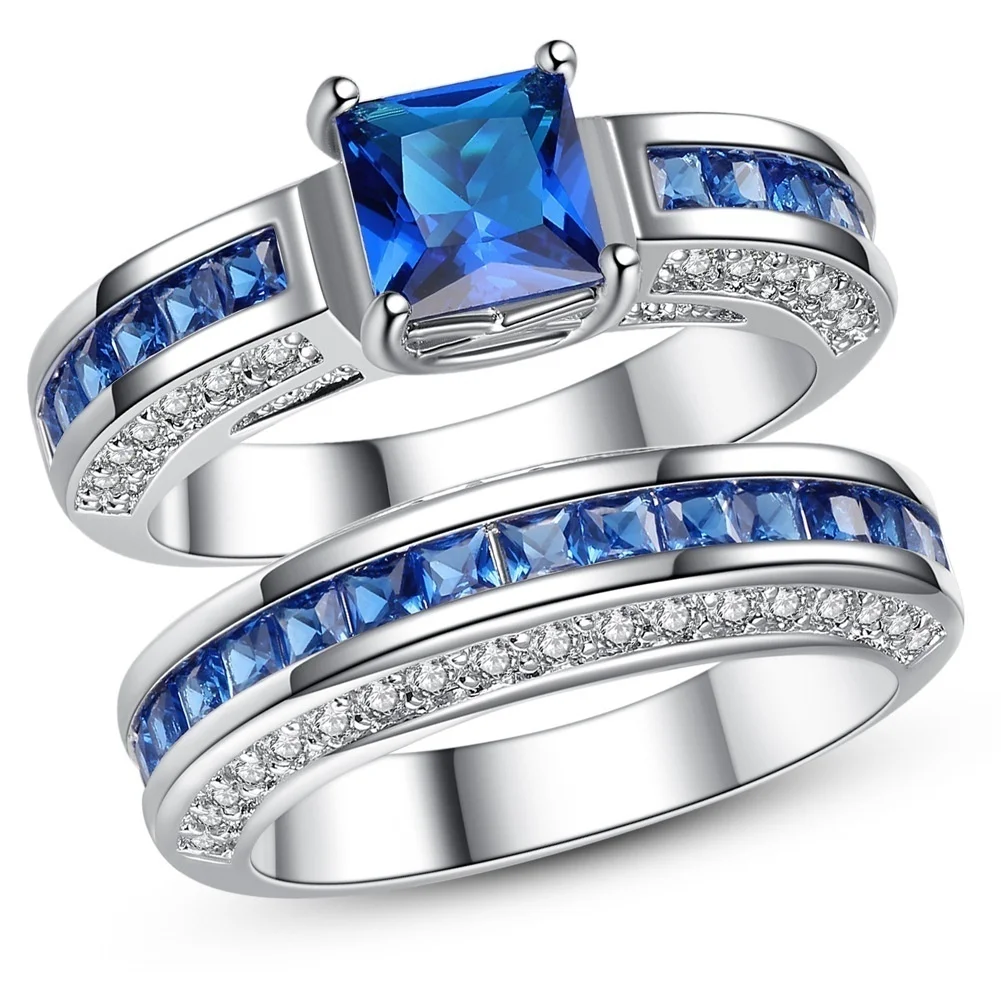 Элегантные 3 шт.компл. синие Квадратные Кольца с кристаллами Стразы...