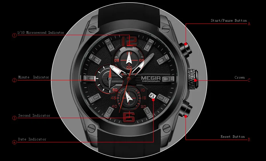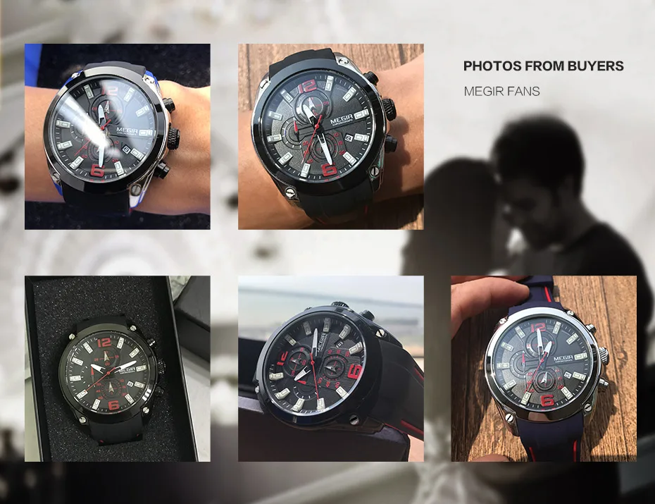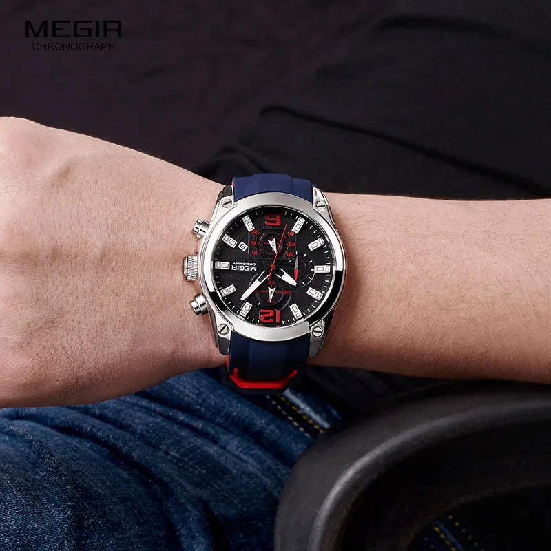 Часы MEGIR Мужские Наручные с хронографом, брендовые водонепроницае...