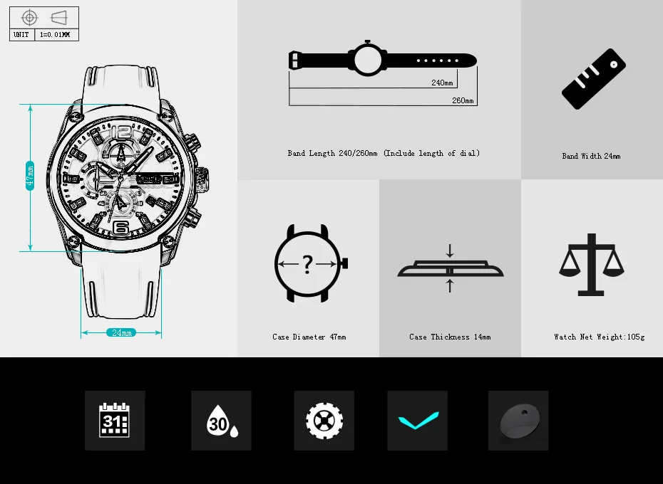 Часы мужские кварцевые, водонепроницаемые, 30 АТМ, со светящимися стрелками